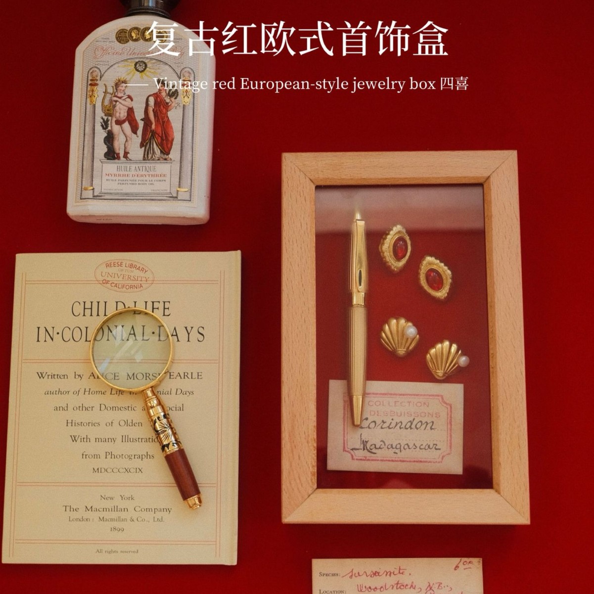 首尔英文书本亚麻饰品盒首饰盒陈列展示首饰包装收纳盒木质