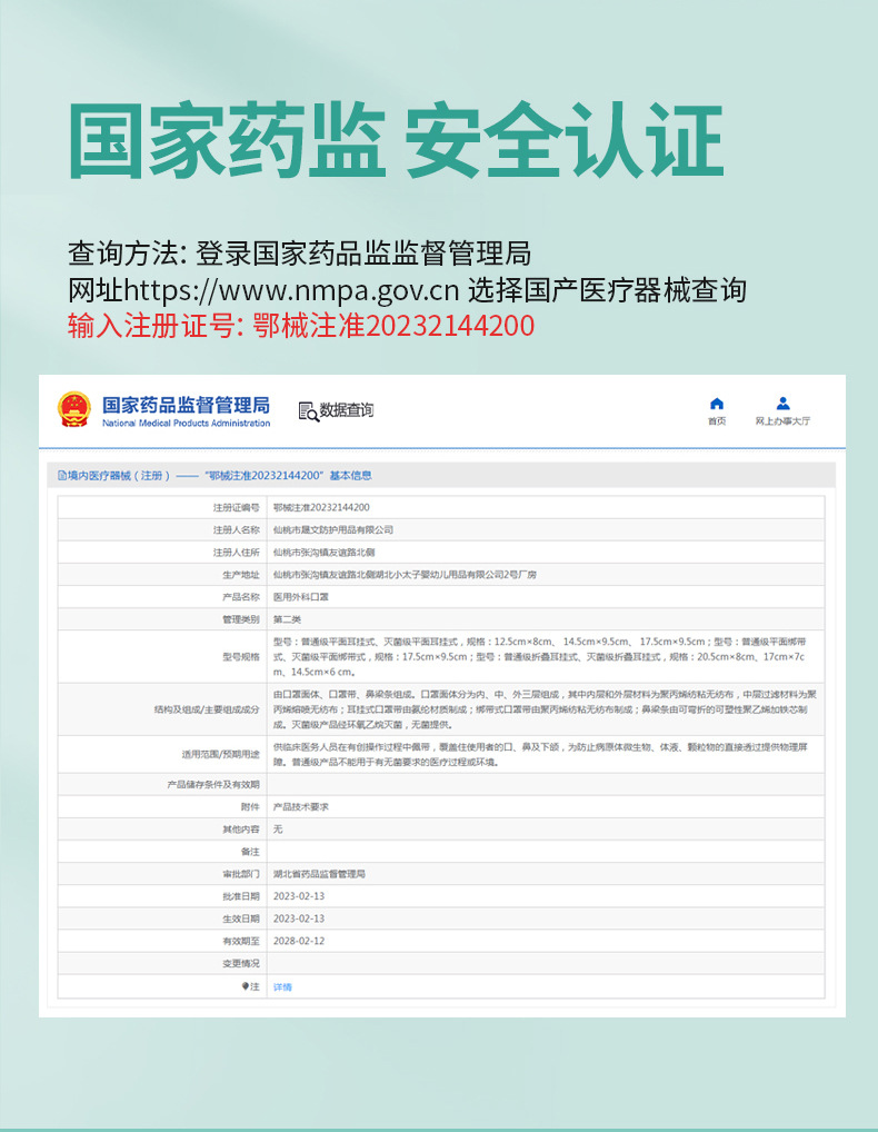 医疗器械注册证号:鄂械注准20232144200 《医用外科口罩》