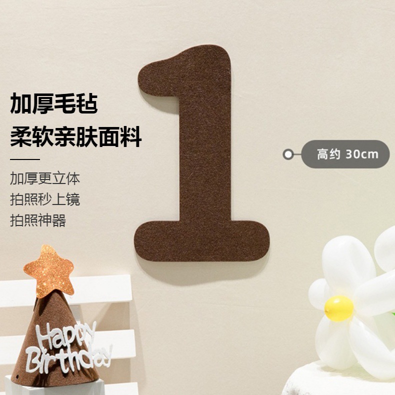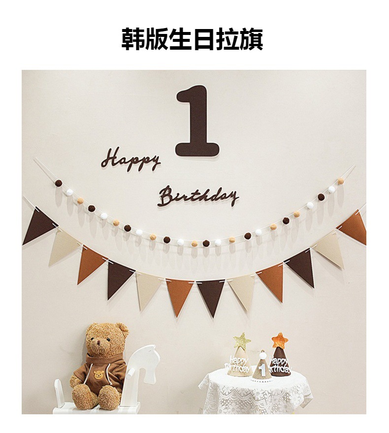 Ins韩风フェルト诞生日フラッグ毛玉串フェルト数字诞生日百日満月饰りフラッグ花引き