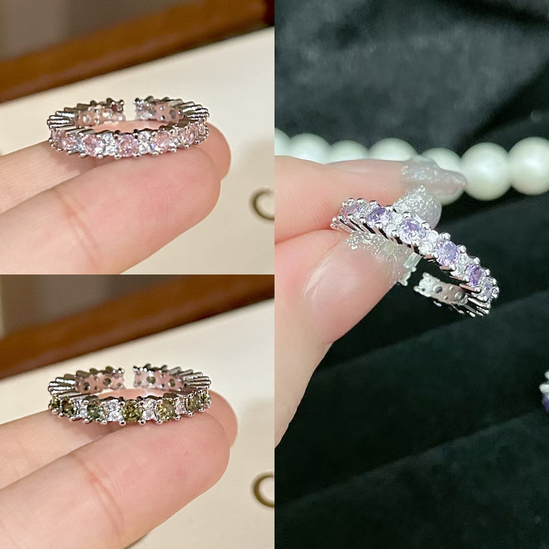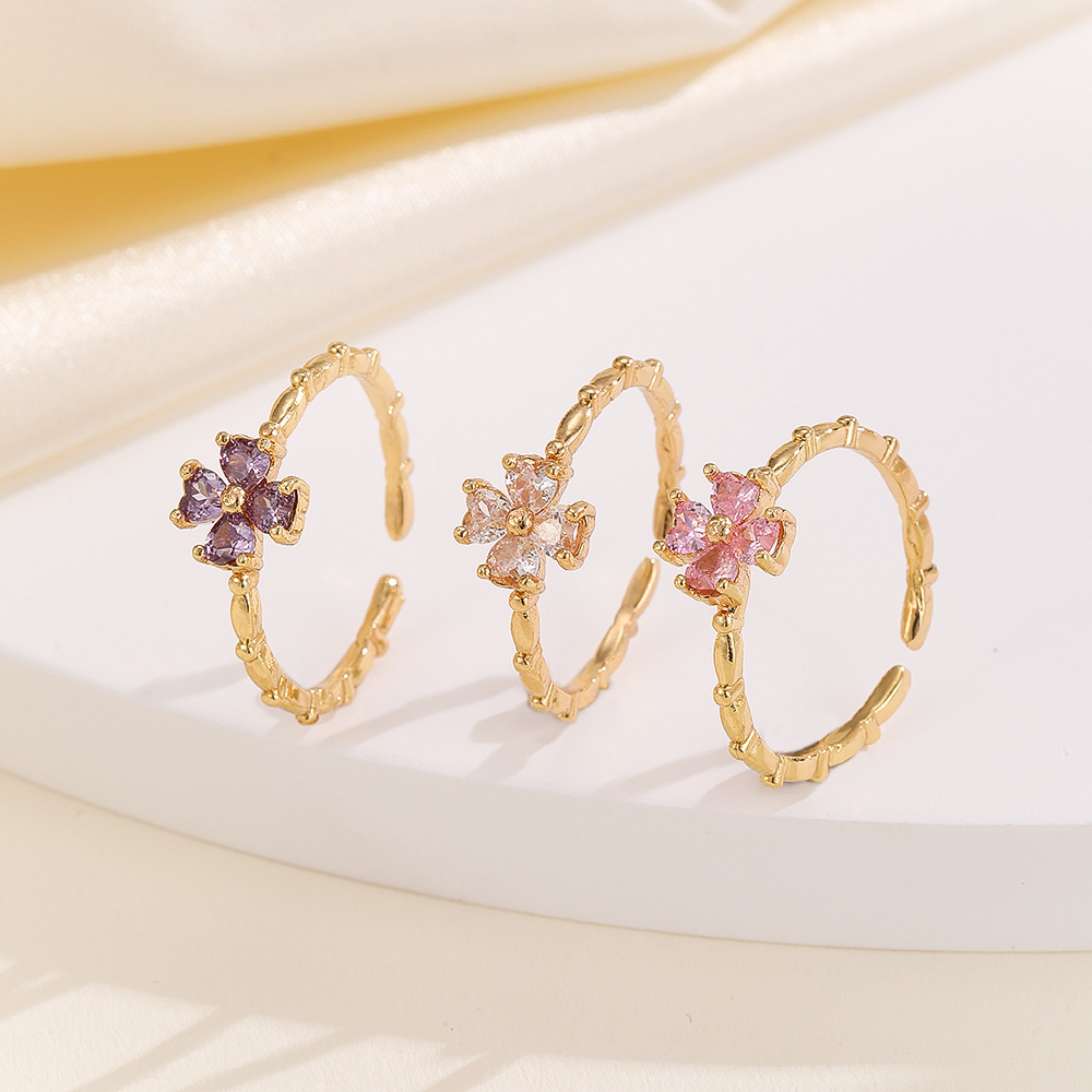 紫色の四叶の花のジルコンの开いたリングの甘い小众のファッションの食の指の戒めのネットの赤い色は指を调整することができます。