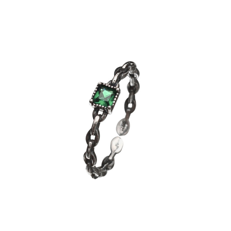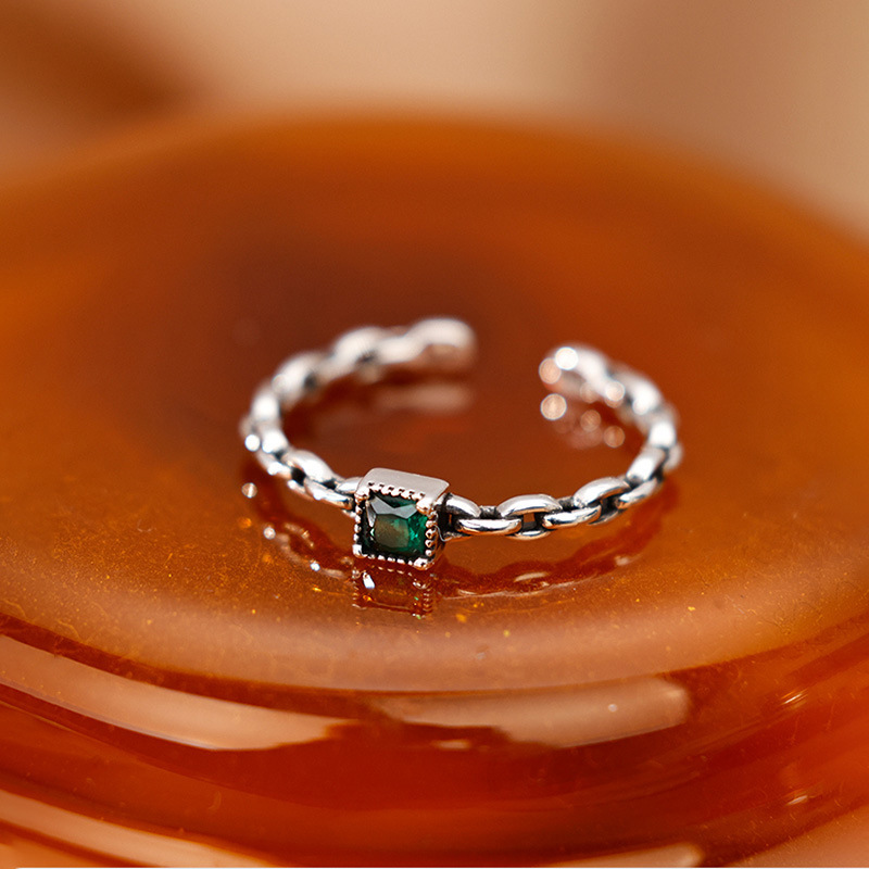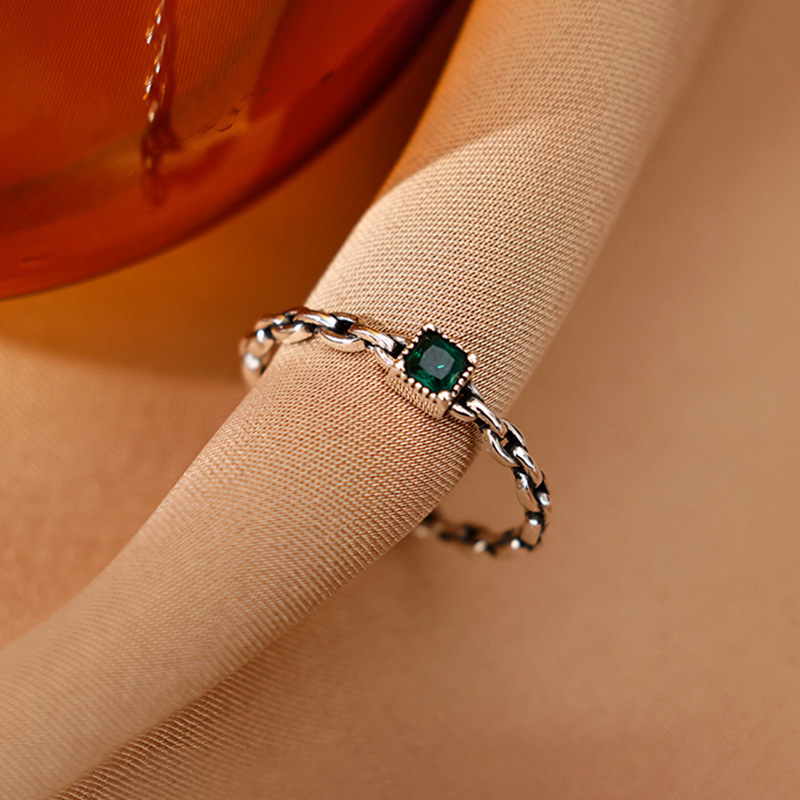 925銀メッキ小方糖指輪女性大衆デザインファッショングリーンレトロ調節可能ブロック人差し指リング