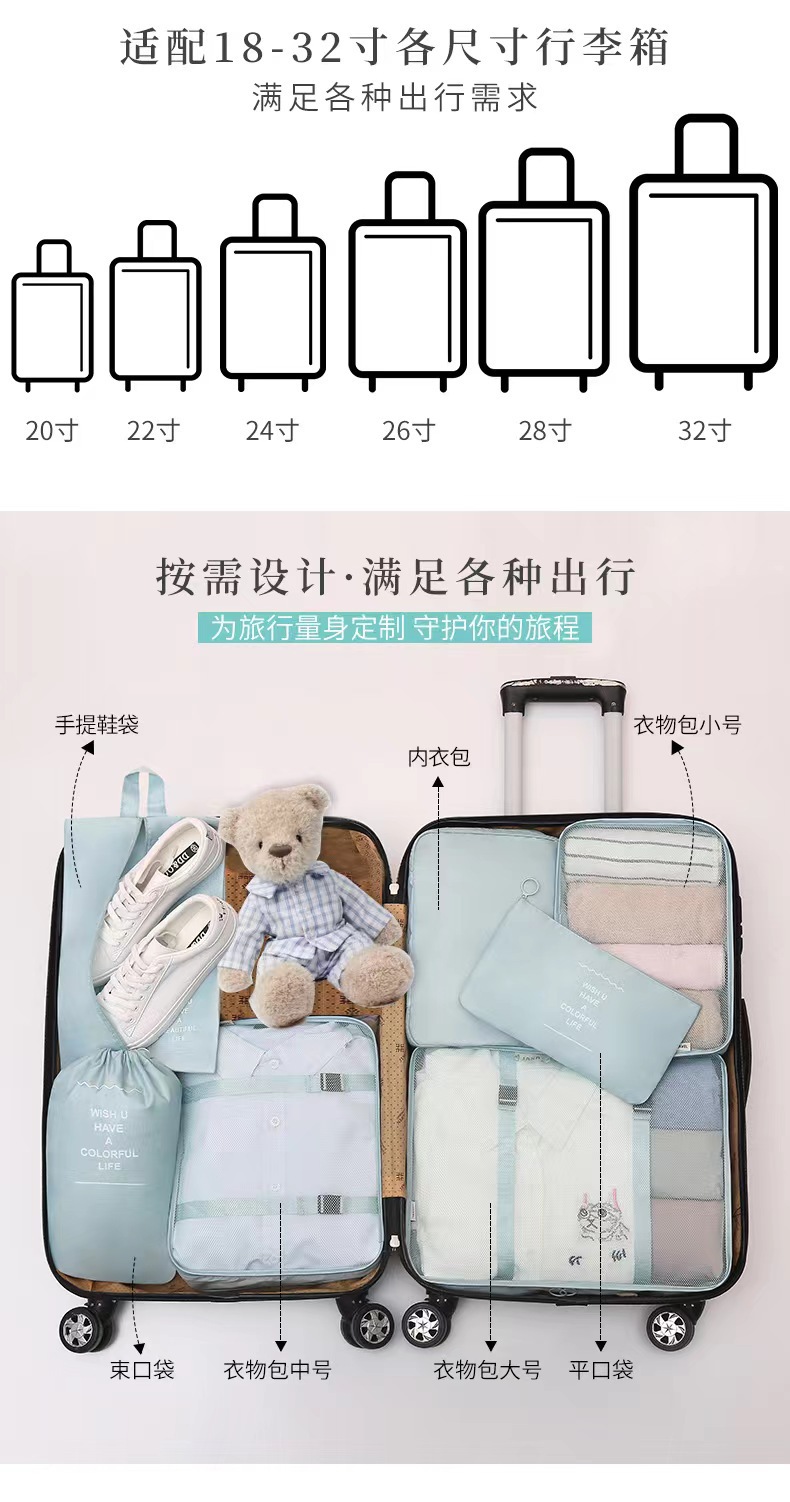 クロスボーダー旅行収納袋セットデジタル洗面化粧品分装収納バッグ服靴荷物旅行袋