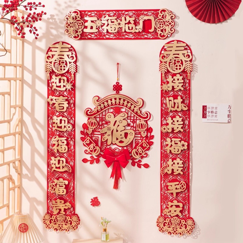 新年2026新款植绒立体金卡对联春节过年门口大门装饰春联门福门挂