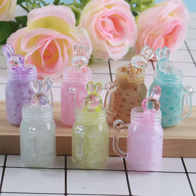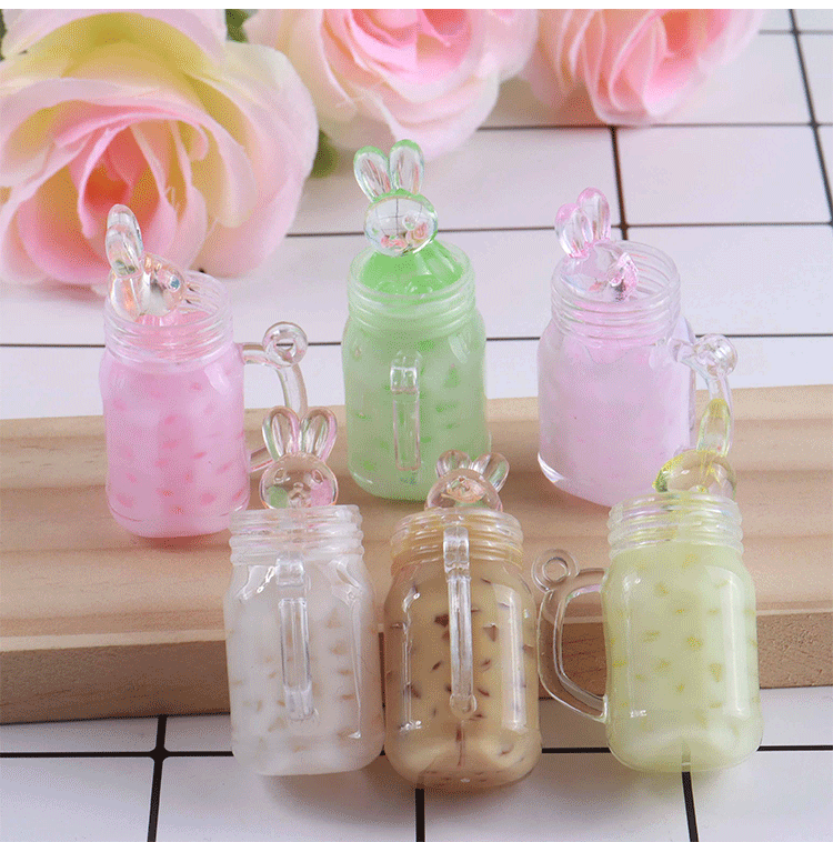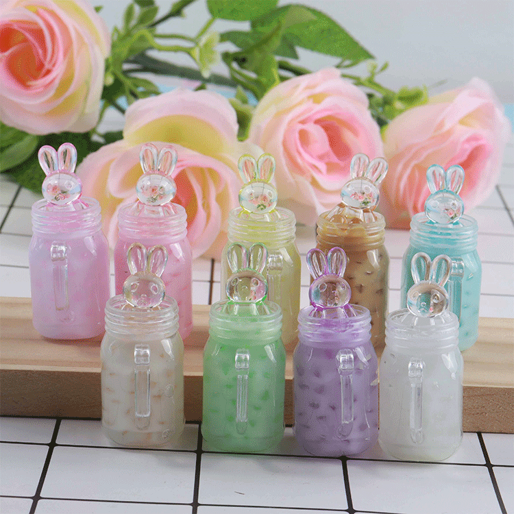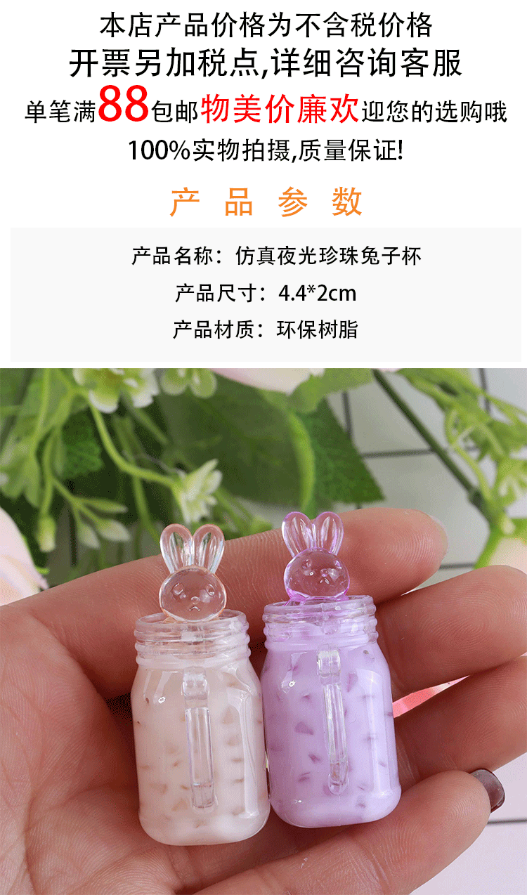 新しい夜光ウサギカップのキーホルダー部品手作りクリームゴム携帯ケース部品