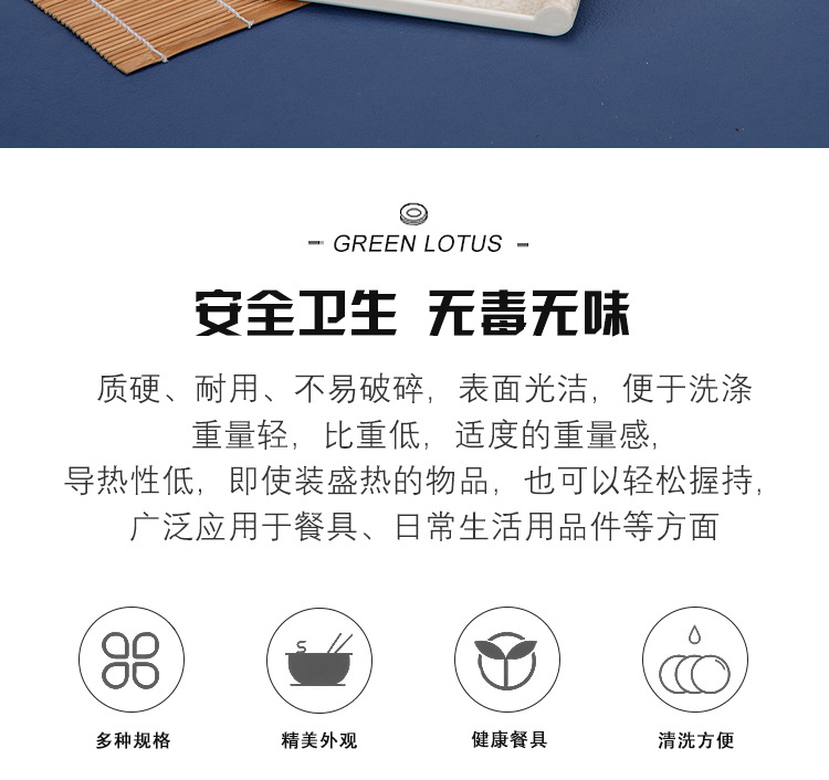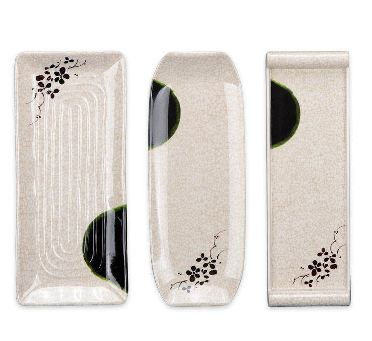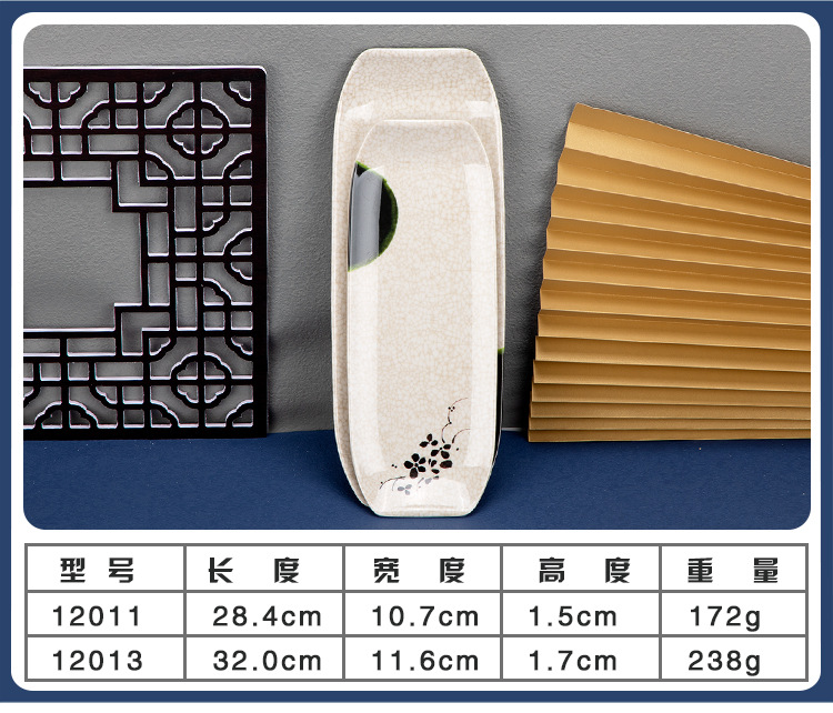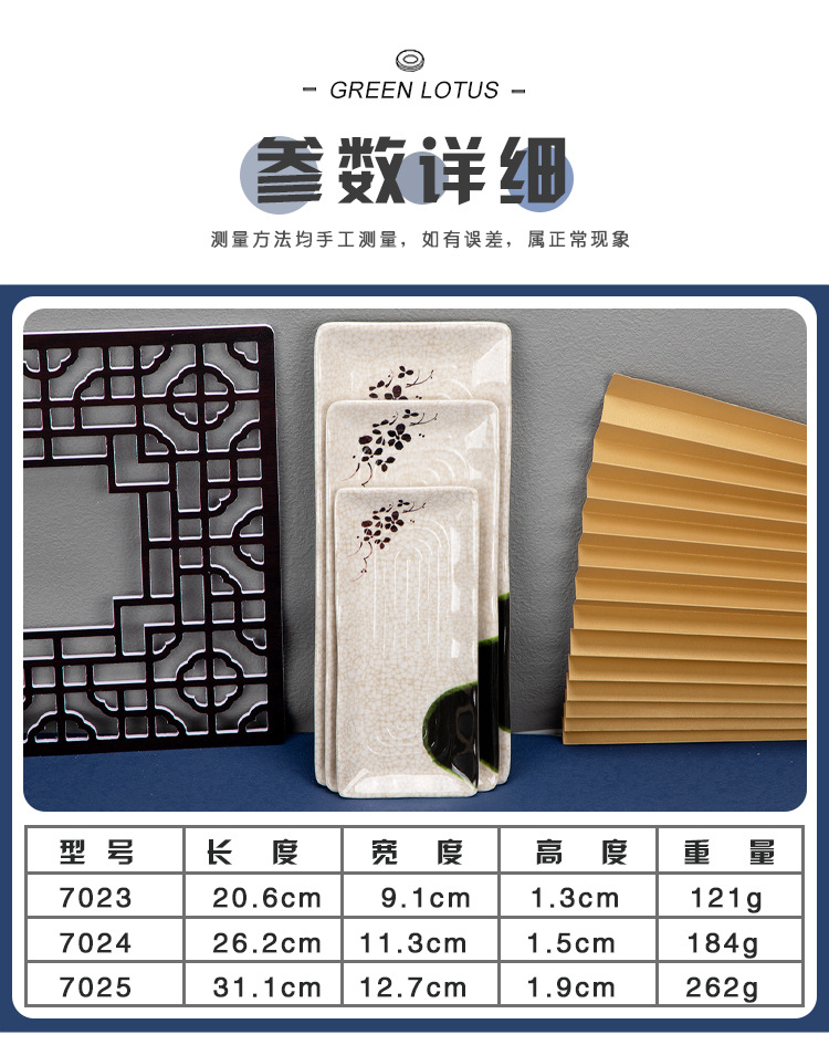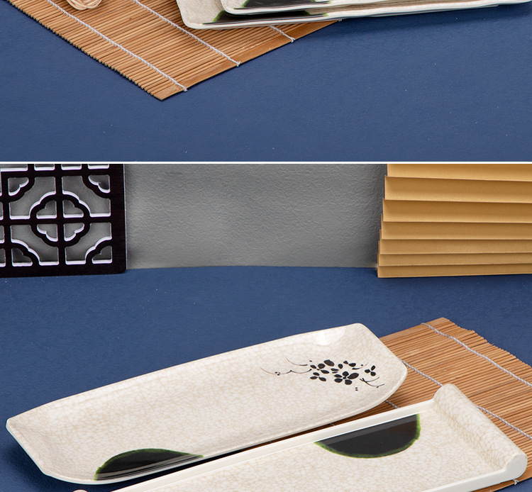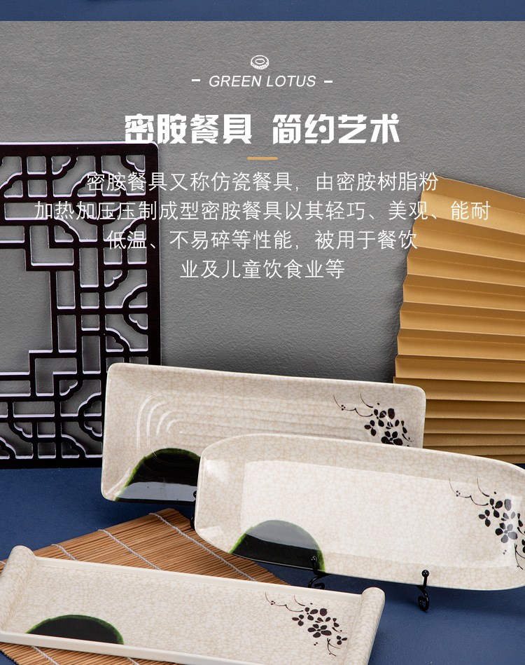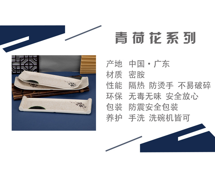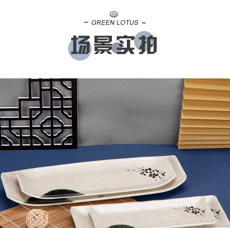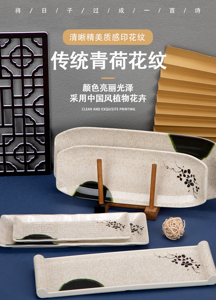青荷の日本式の長方形の寿司の皿の軽食の皿のセルフサービスのレストランの鍋の肉の皿のメラミンは磁器の食器をまねます