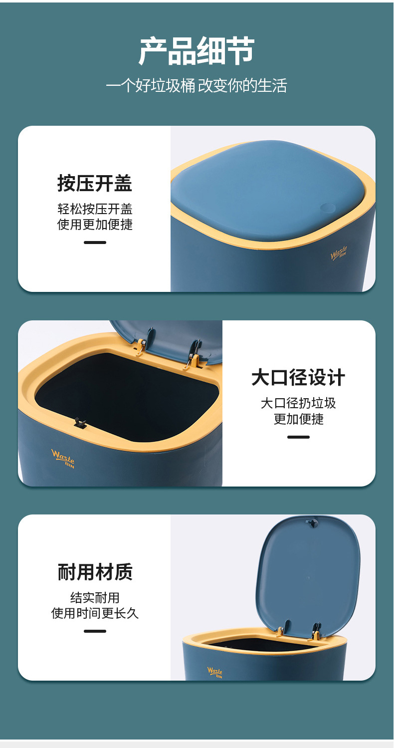 ネット赤シンプルゴミ箱家庭用寝室リビングキッチントイレ押圧式大容量高颜値ゴミ箱