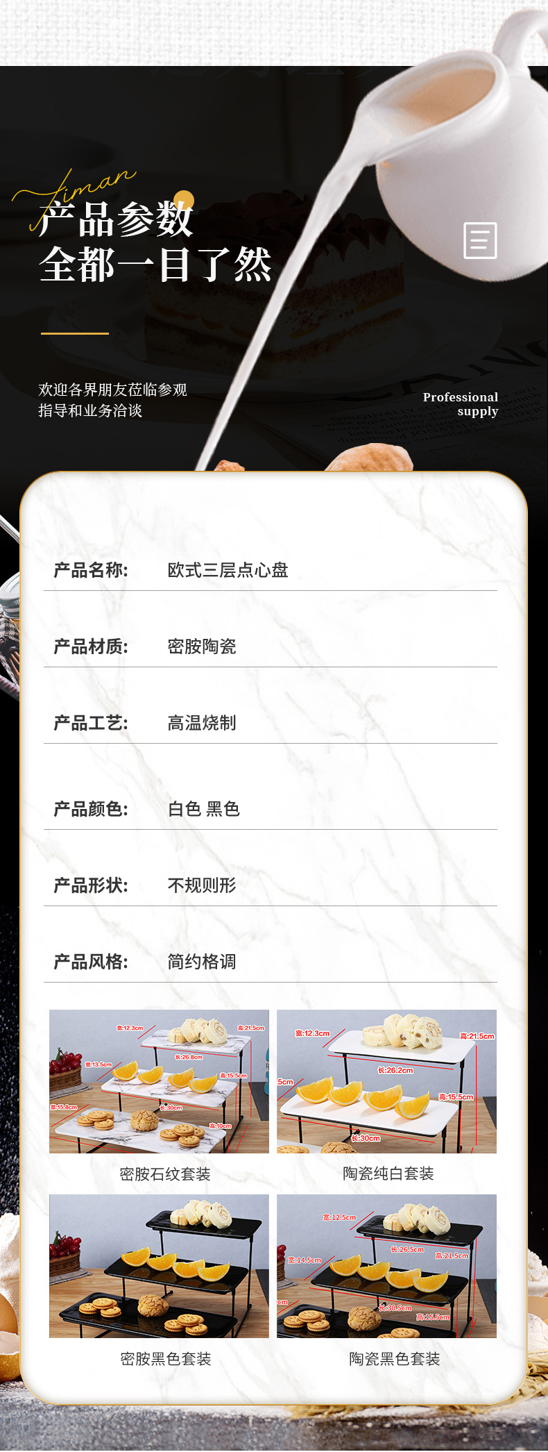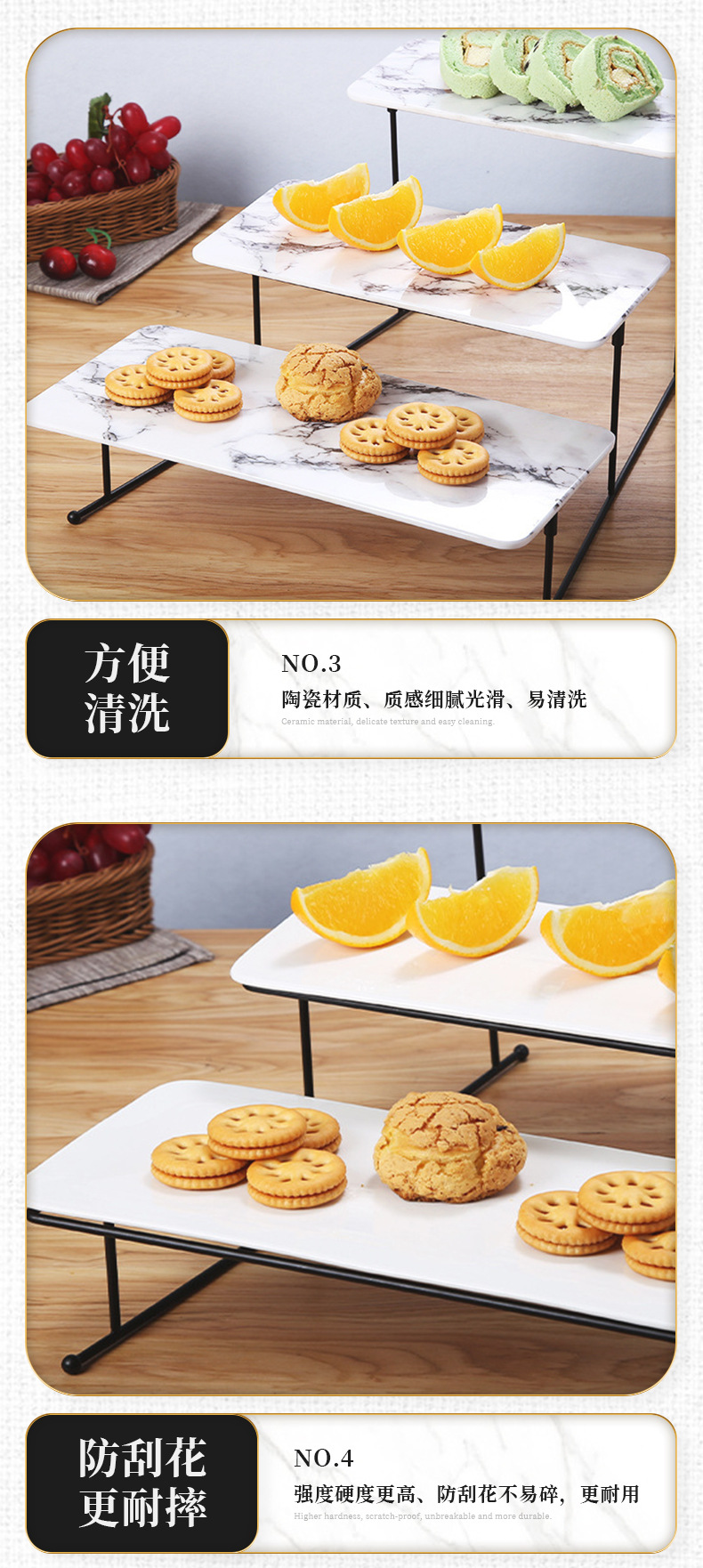 白色陶瓷点心架三层水果盘托盘酒店甜品台自助餐展示架