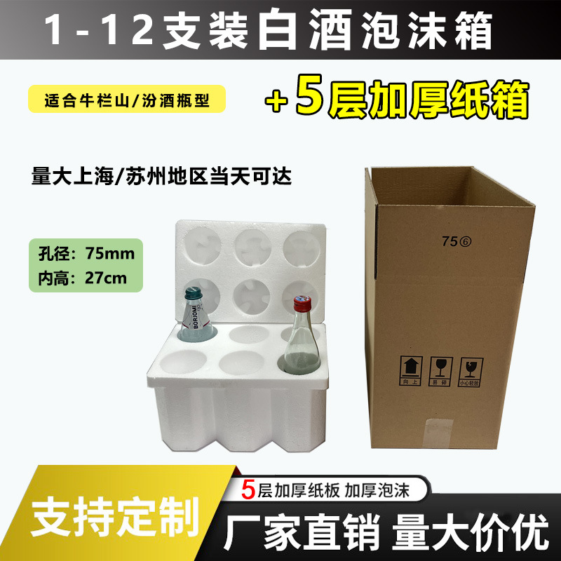 白酒泡箱75穴6本入泡箱 + 段ボール箱牛手すり山汾酒瓶型宅配便減投包装