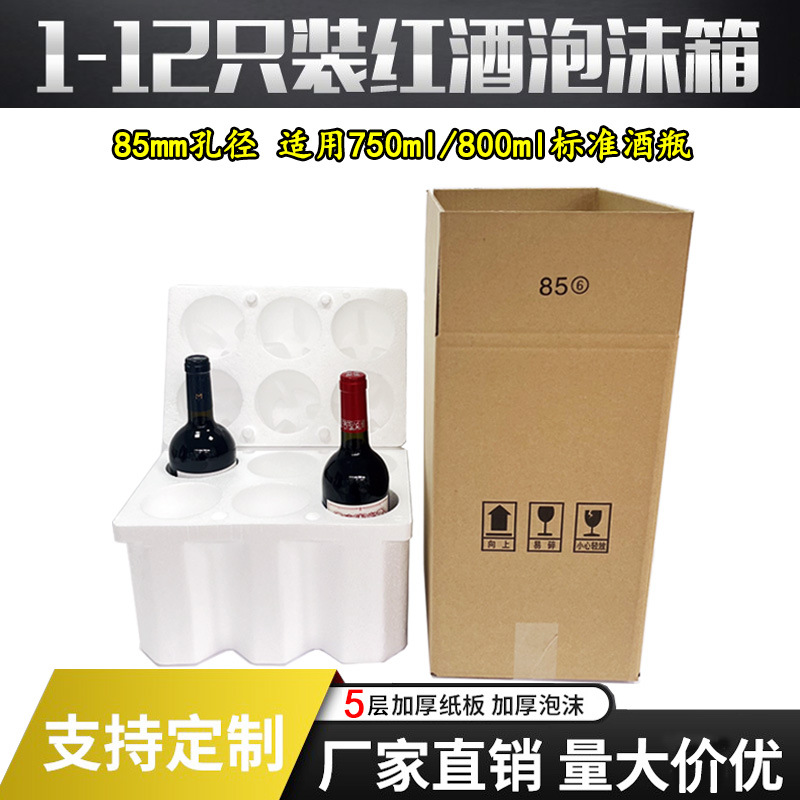 赤ワイン発泡スチロール箱6本入85穴径1/2/3/4/8/ 12本入5層入り厚手段ボール箱メーカー出荷