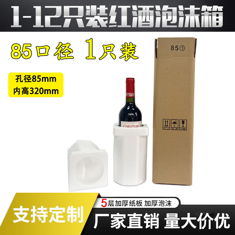 赤ワイン発泡箱85mm口径1本入発泡箱5層入り段ボール赤ワイン専用包装