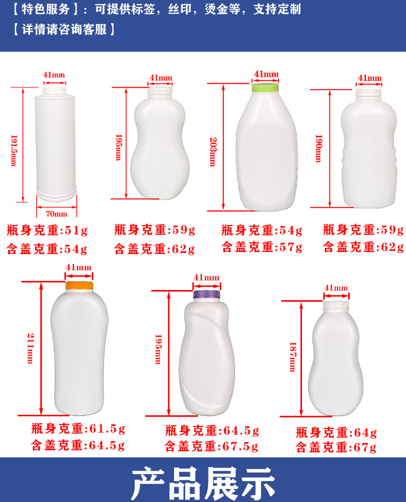 ブロー成形化粧品プラスチックシルク印刷pe爽身分ボトルボックス乳幼児あせもパウダーボトル大人用パウダーボトル