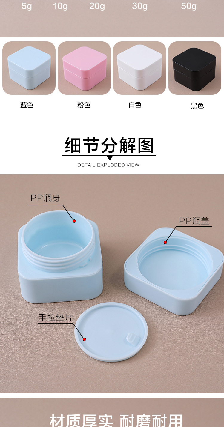 厂家直销PP材质 5g10g20g30g50g膏霜分装盒 四方圆角便携式面霜盒