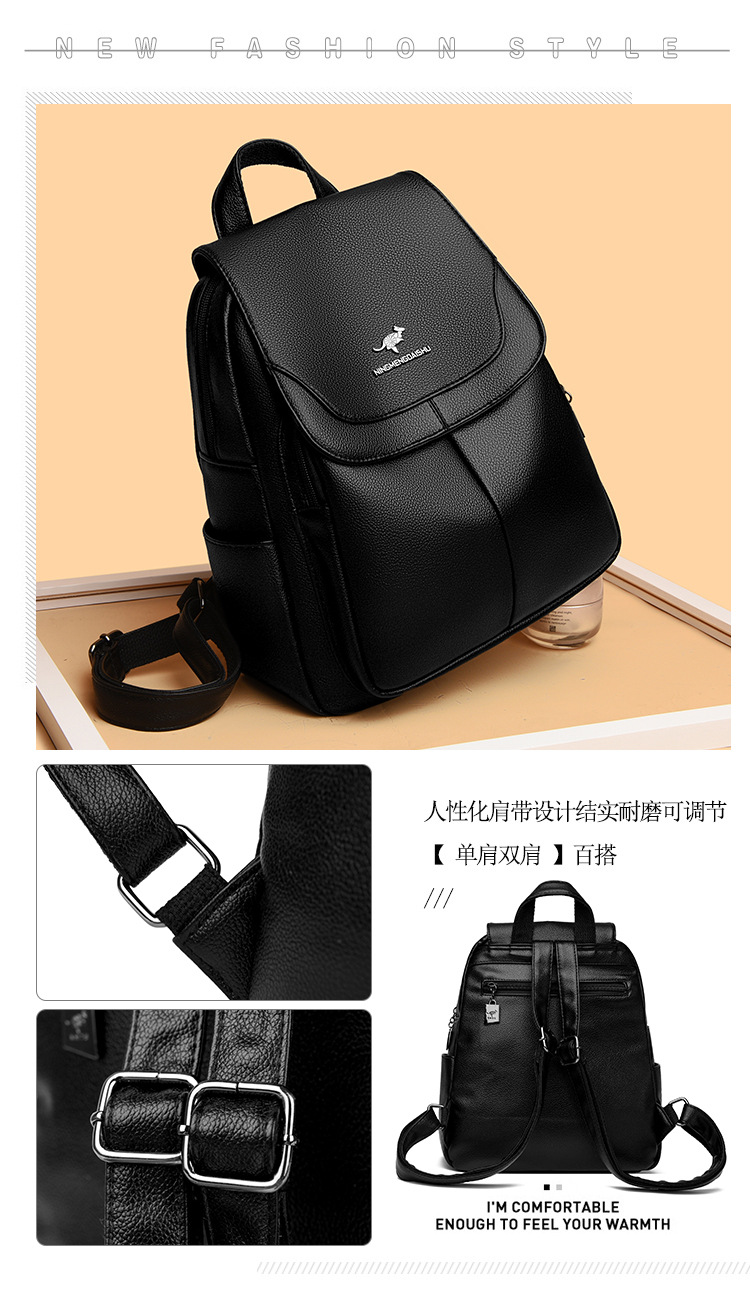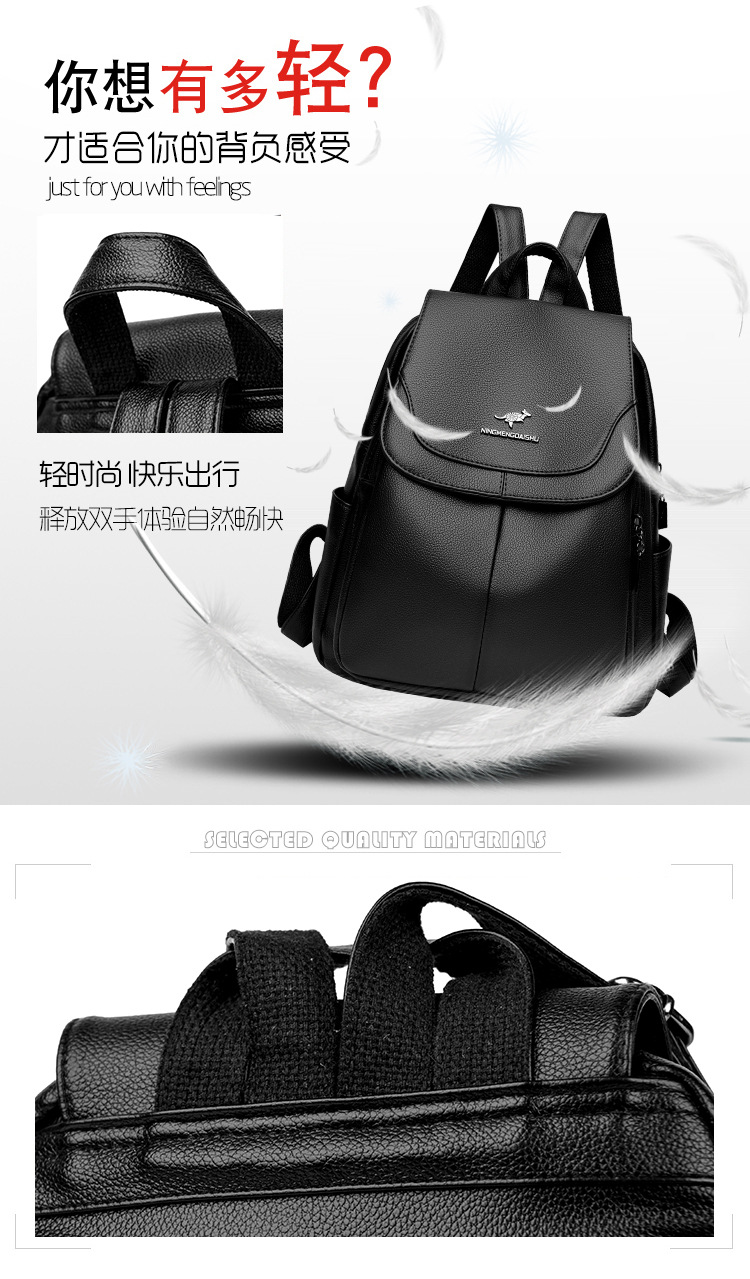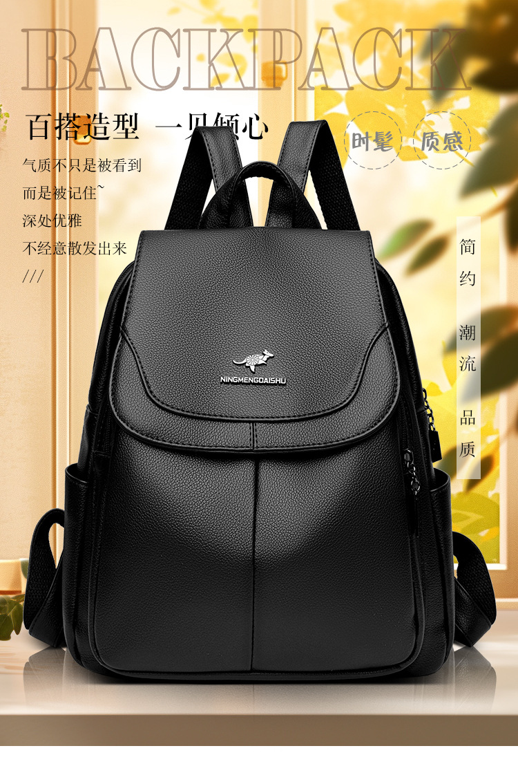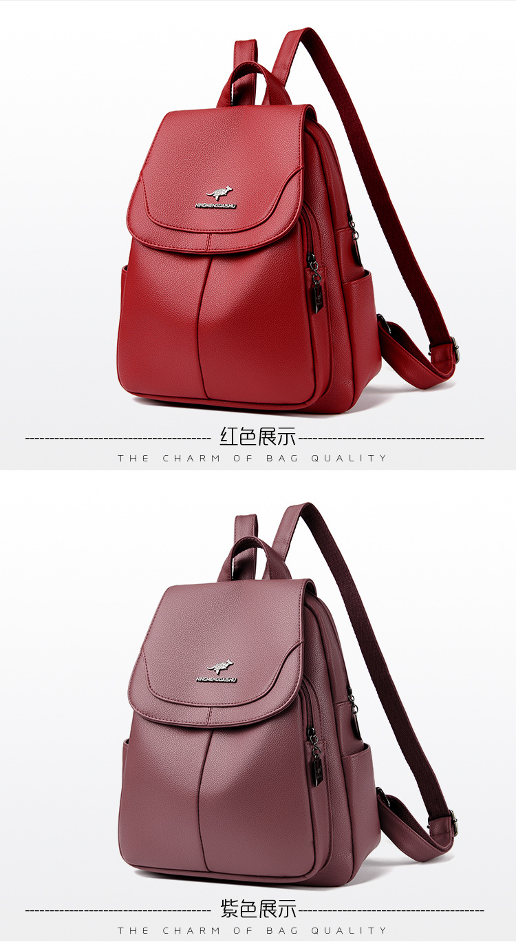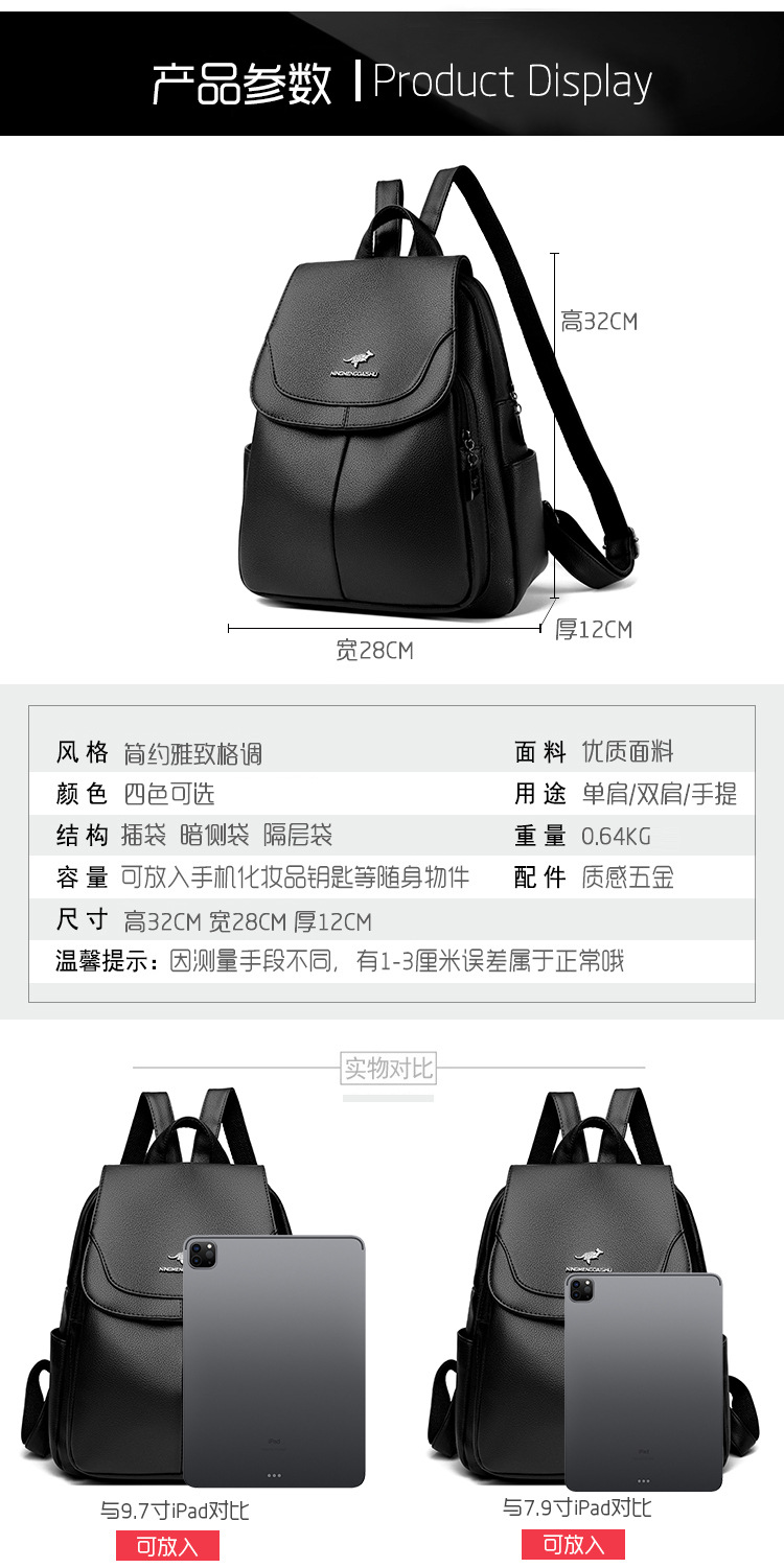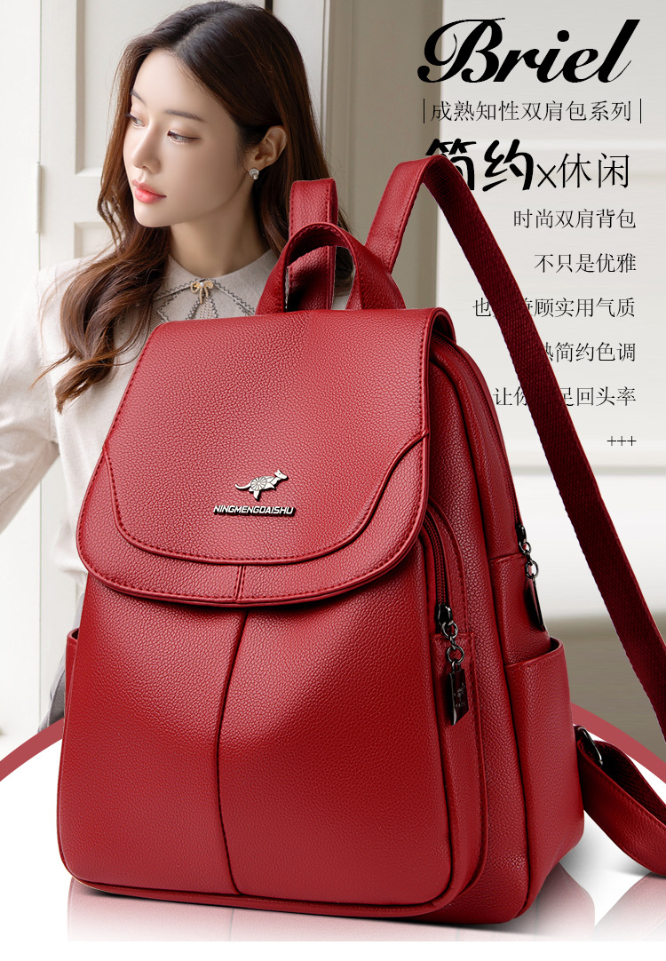 真软皮双肩包女士新款背包简约百搭大容量旅行背包妈咪包多用书包