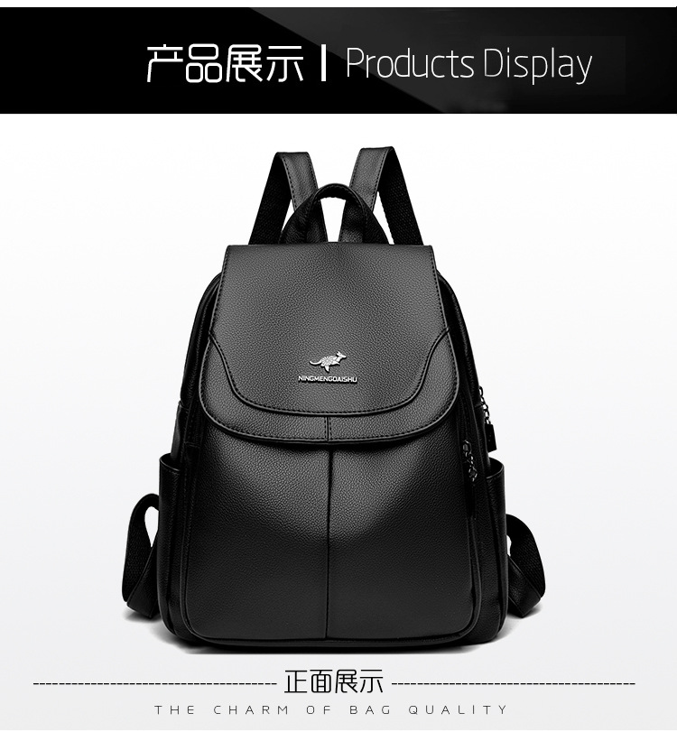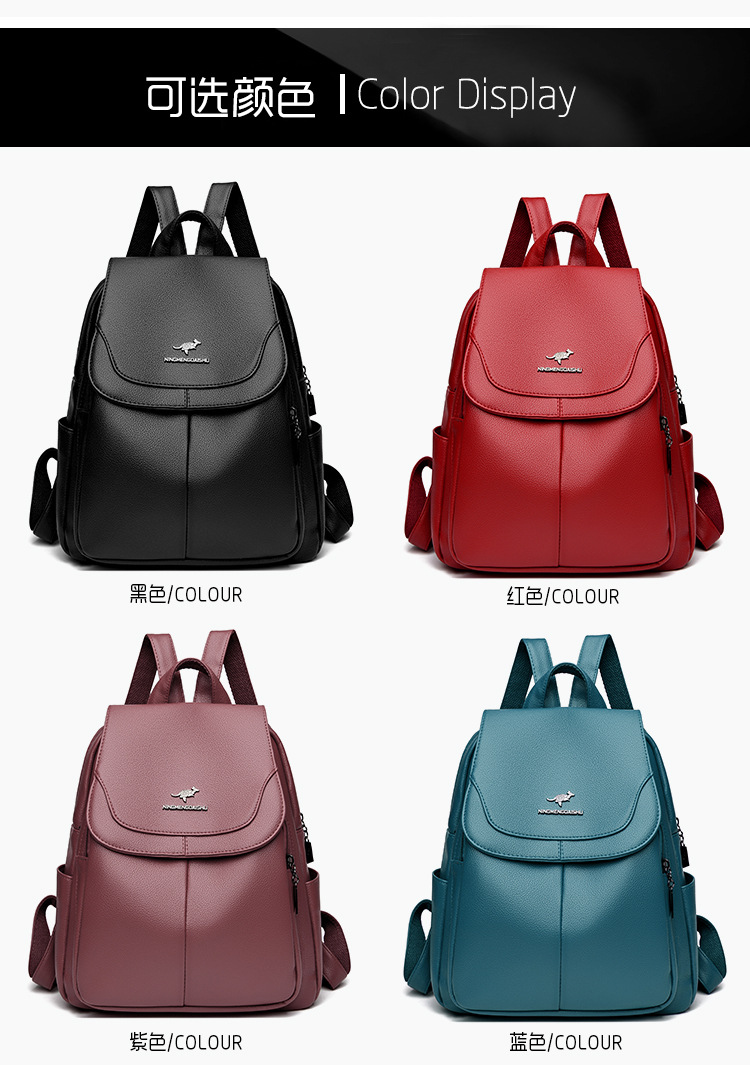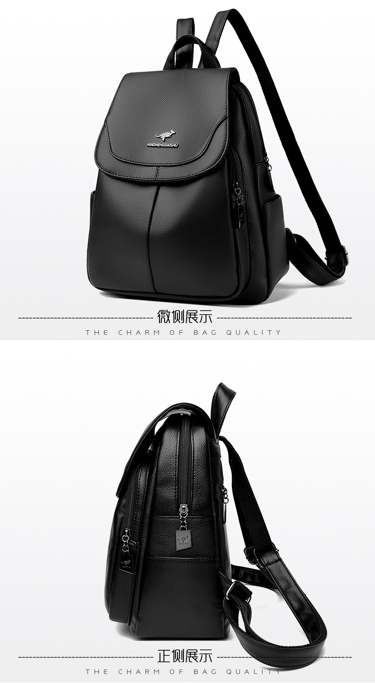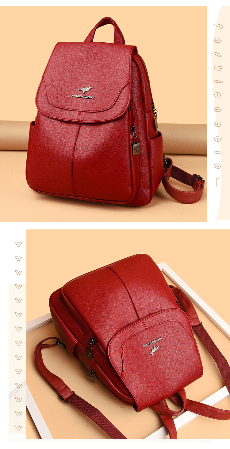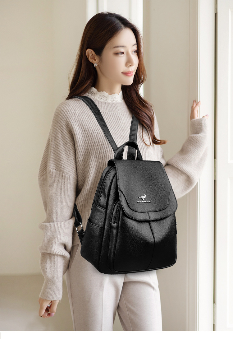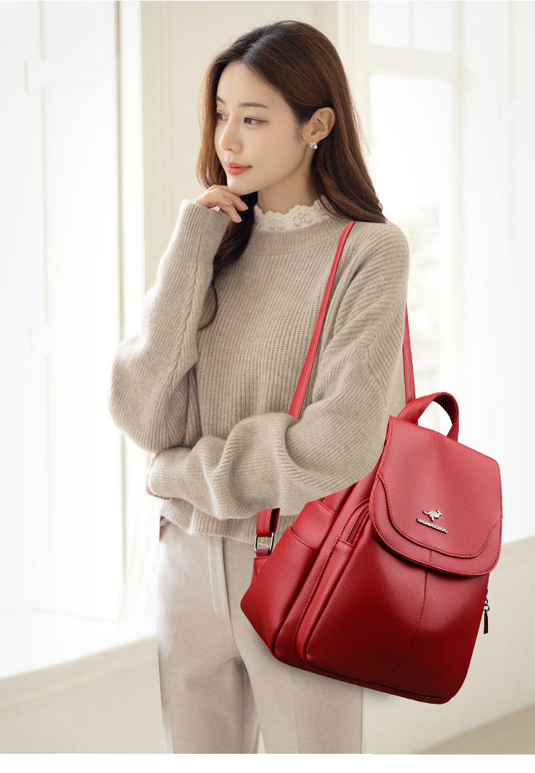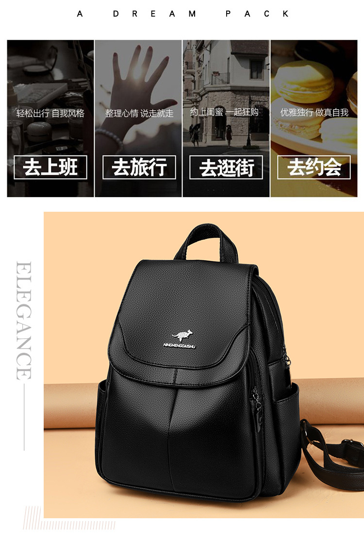 真软皮双肩包女士新款背包简约百搭大容量旅行背包妈咪包多用书包