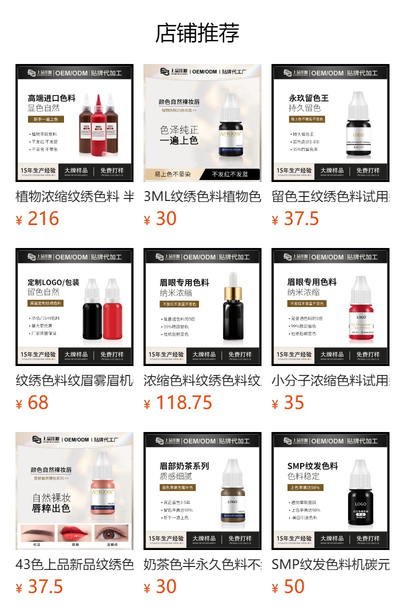 色持ちの良い王紋刺繍色料お試しパック、長持ちする色、ミスト眉、ライン眉、半永久的な植物性色料、眉の定型化