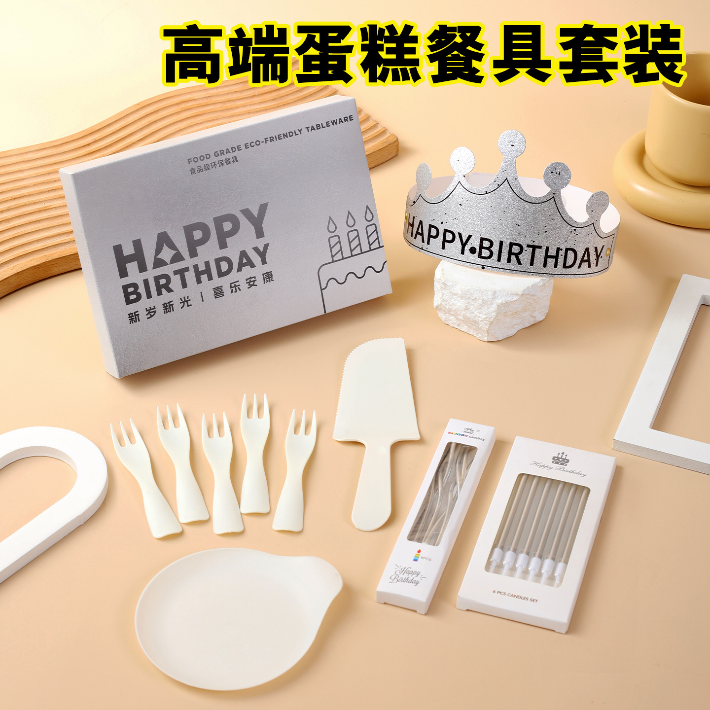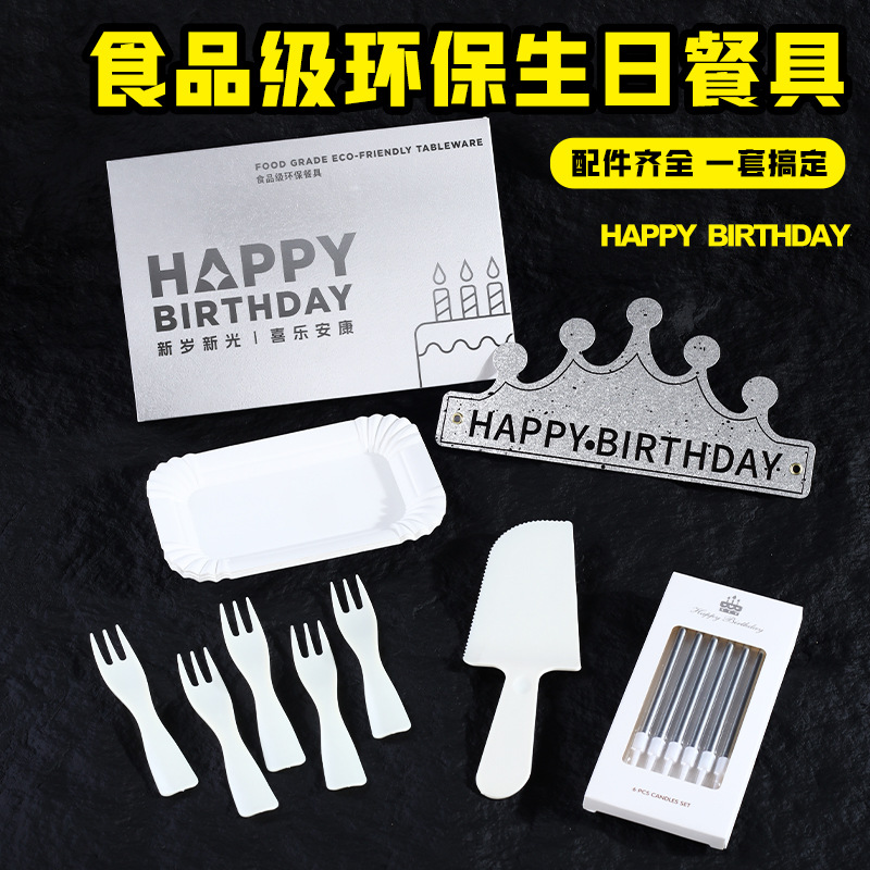 生日蛋糕餐具套装一次性餐盘刀叉碟子组合水滴盘叉盒帽子蜡烛