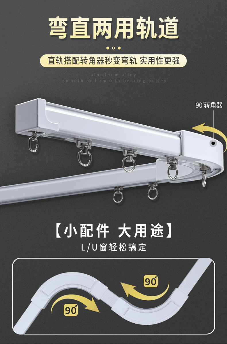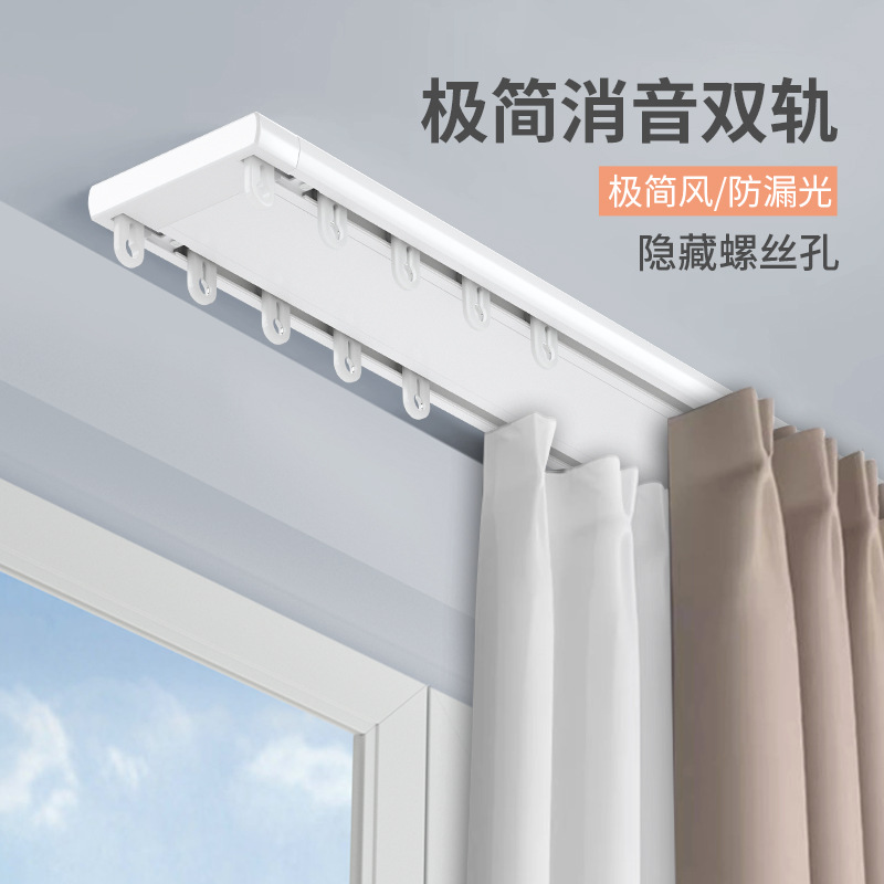 アルミ合金一体型カーテンダブルレール軽贅沢一体カーテンスライドレール直軌道厚静音カーテントラックダブル軌道