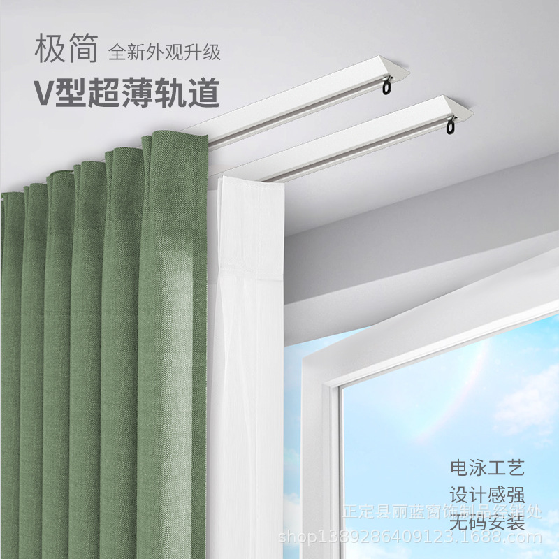 軽豪華静音v型カーテンスライドレール三角レールカーテンスライドレール超薄内窓に穴開けないカーテンレールを貼り付ける