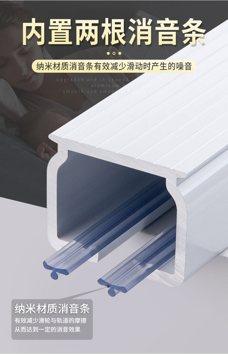 カーテンレール単双軌道直軌道アルミニウム合金静音カーテンレール厚いカーテンレールベランダシンプル