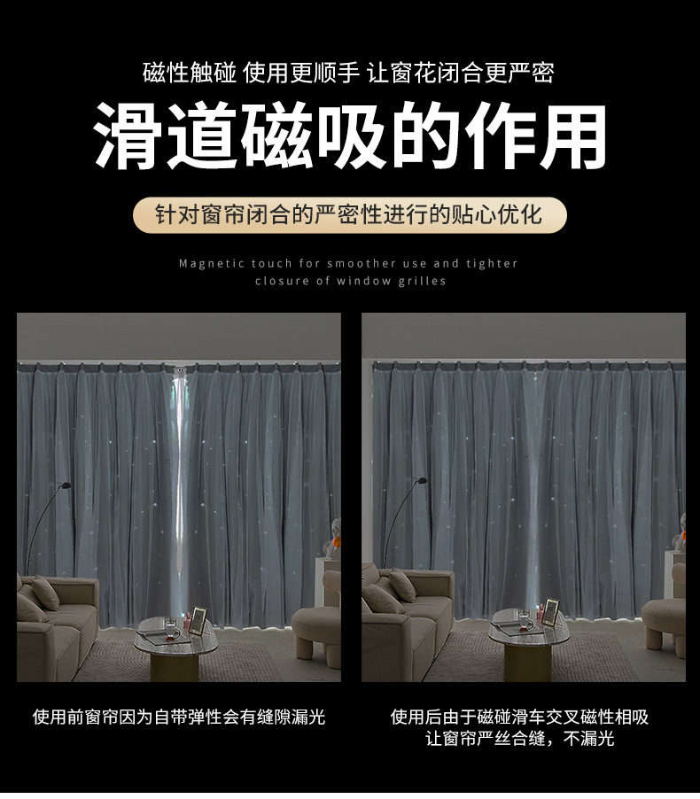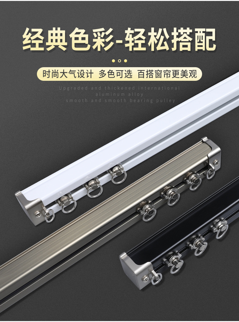 光漏れのないクロスカーテン軌道アルミ合金シュート静音直軌道トップには、サイドには窓モノレールが取り付けられています。