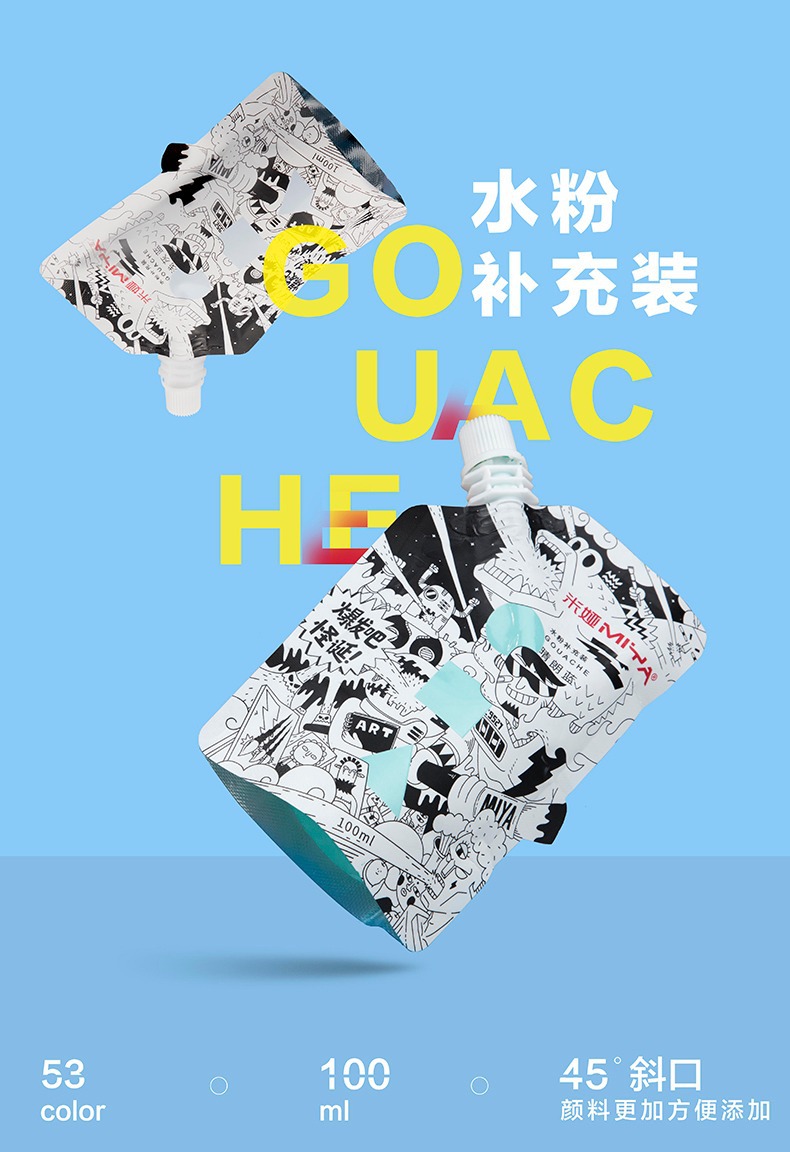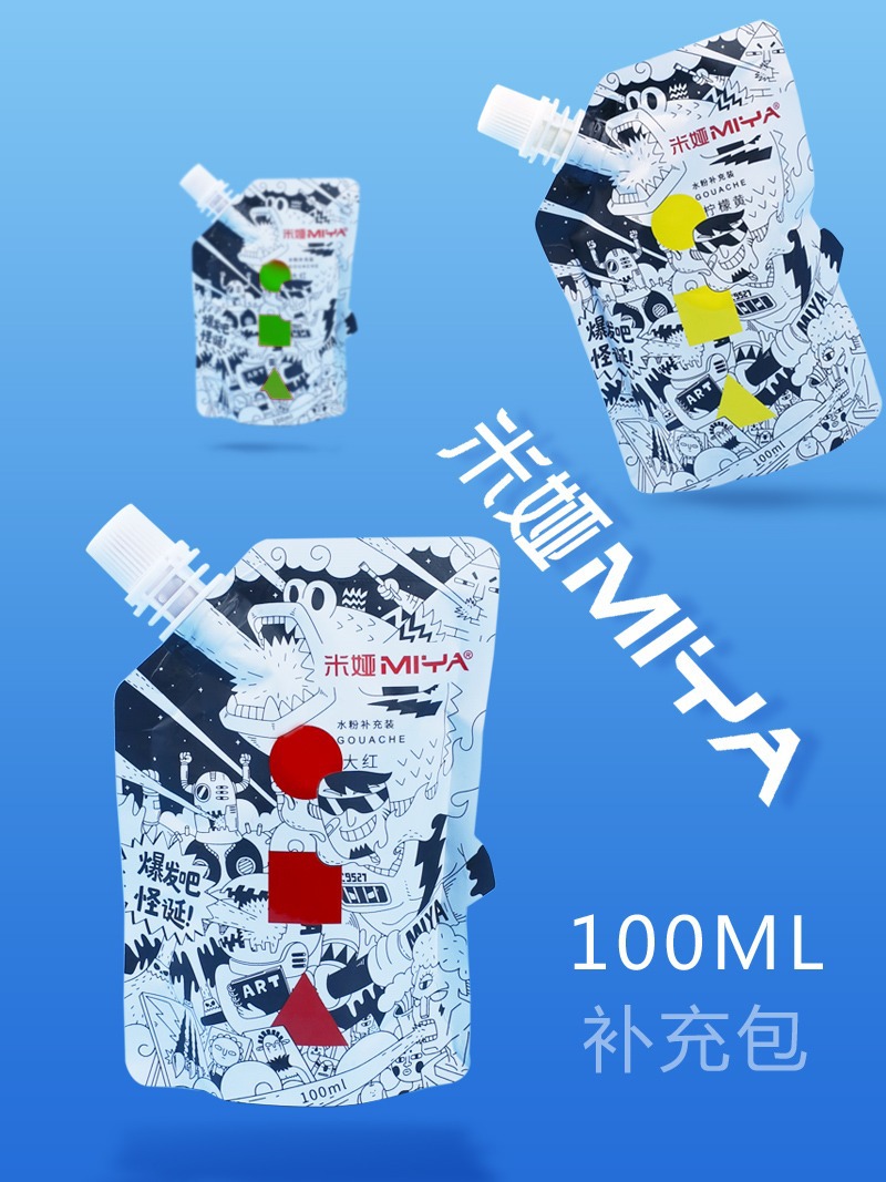 米娅CJ水粉颜料怪诞补充装100ML袋装初学画画果冻颜料集训艺考用