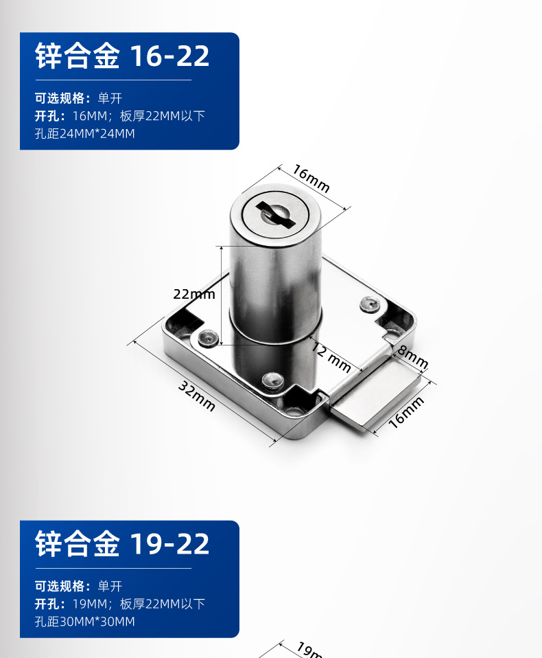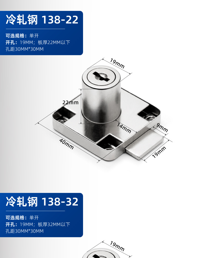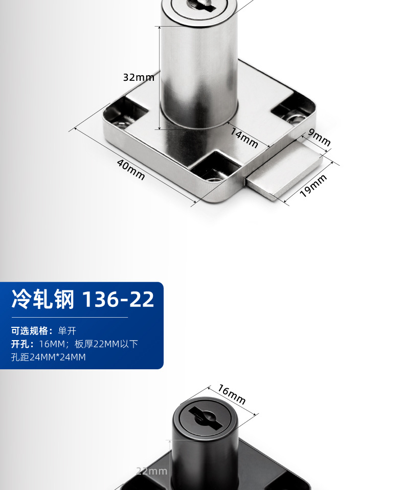メーカー卸売り事務机引き出しロック家具ロックロックキャビネットドアロック合金平頭引き出しロック138-22