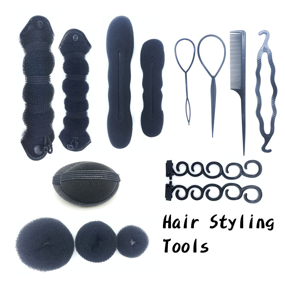 ファッション団子のつぼみの髪器の暗いボタンのDIYの髪の毛のドーナツのヘアリングのアクセサリーの団子の髪