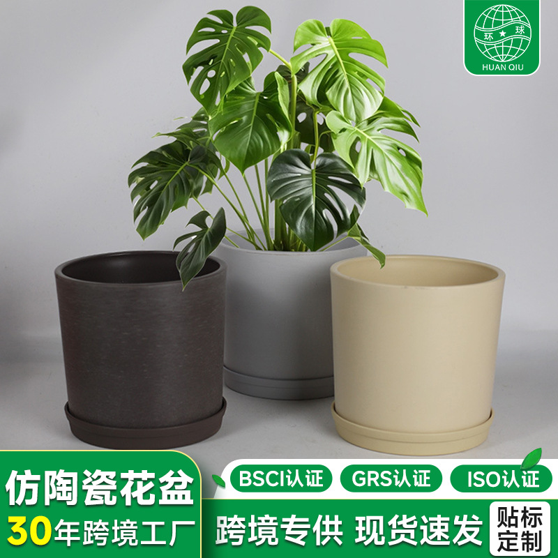 ユニバーサルセラミック風植木鉢、高光沢釉薬、厚手樹脂製植木鉢、床置きバルコニー用高植木鉢、プラスチック製植木鉢