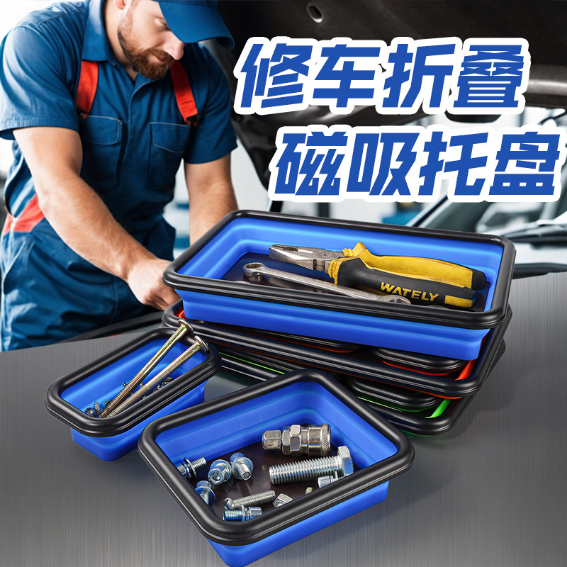 3件套长方形硅胶盘 可折叠磁性零件托盘 收纳盘便携五金收纳整理