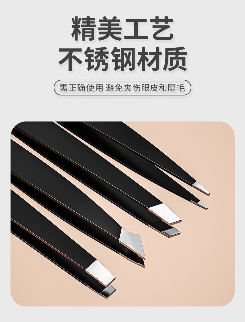 ステンレス製の眉毛ピンセットセットで眉の先を修理します。