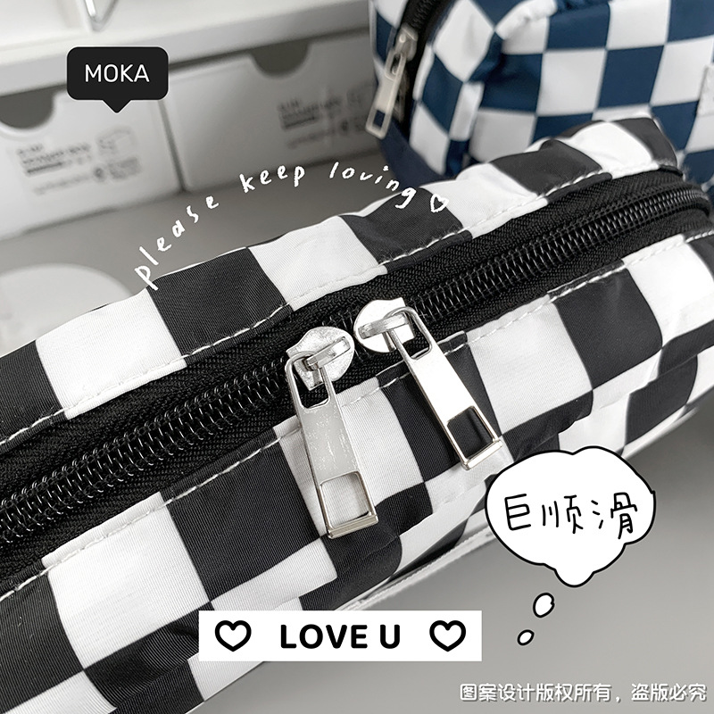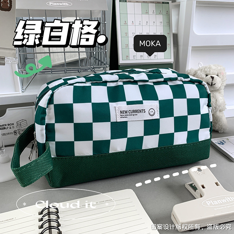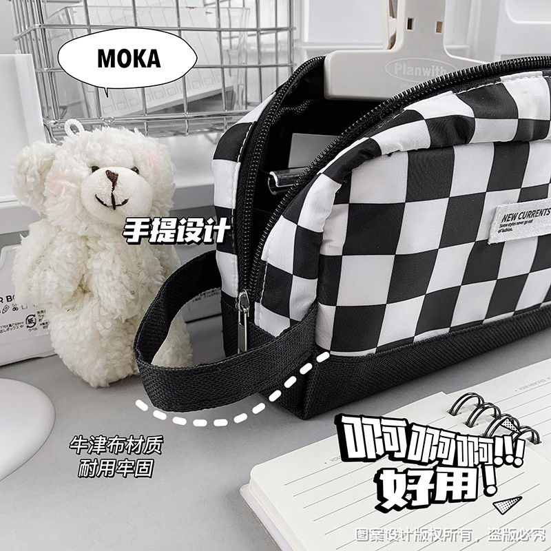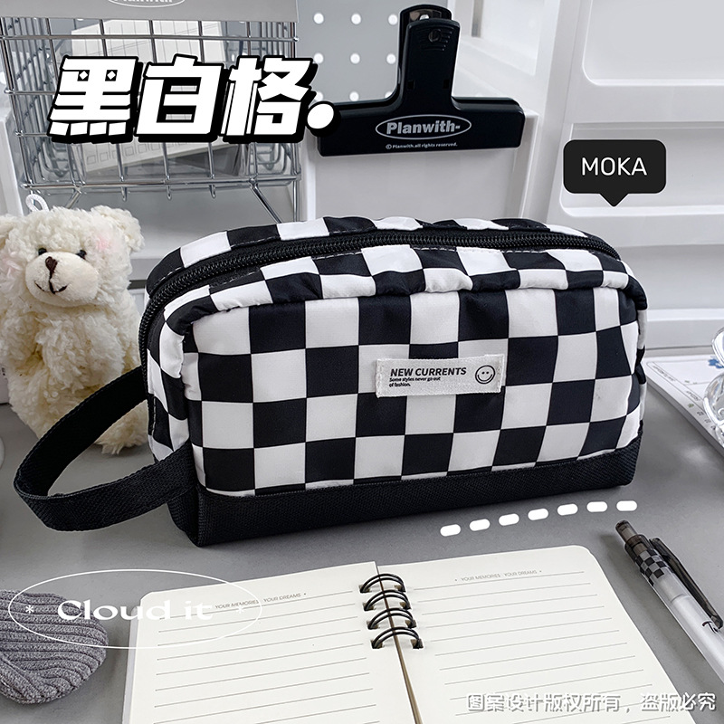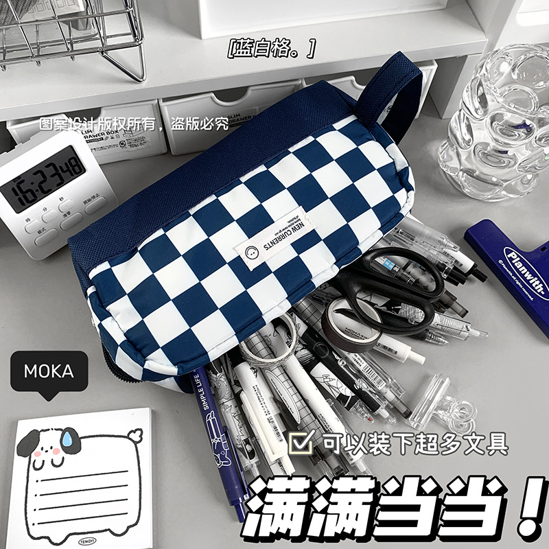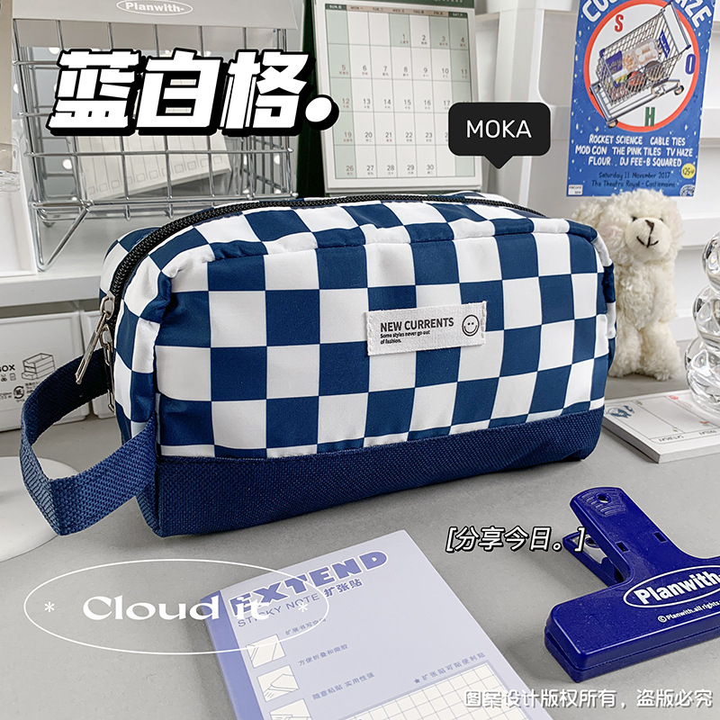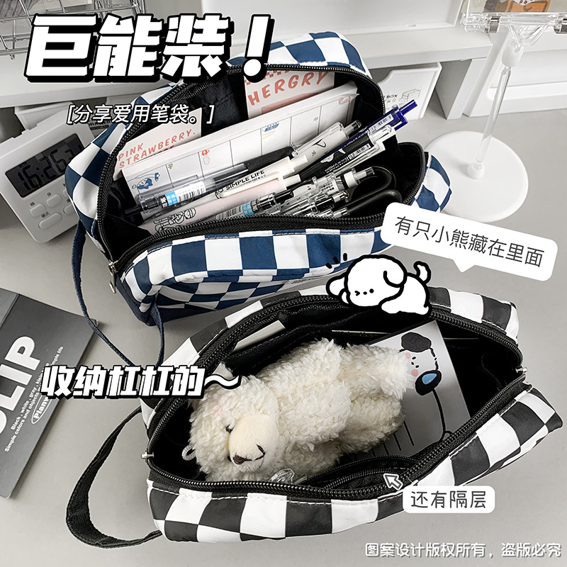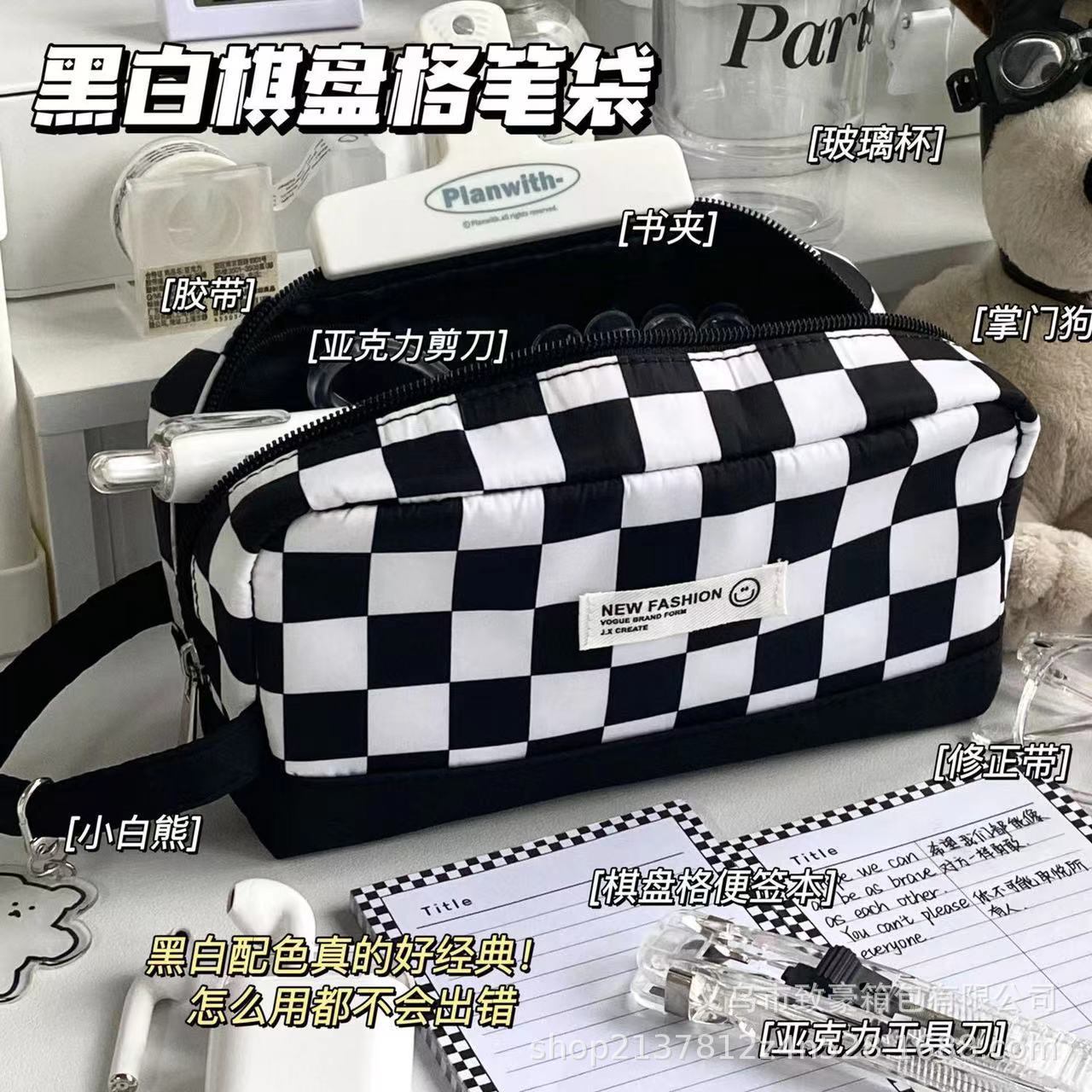 小紅書同金ins風棋盤格筆袋大容量文房具収納袋学生高颜値女子化粧バッグ