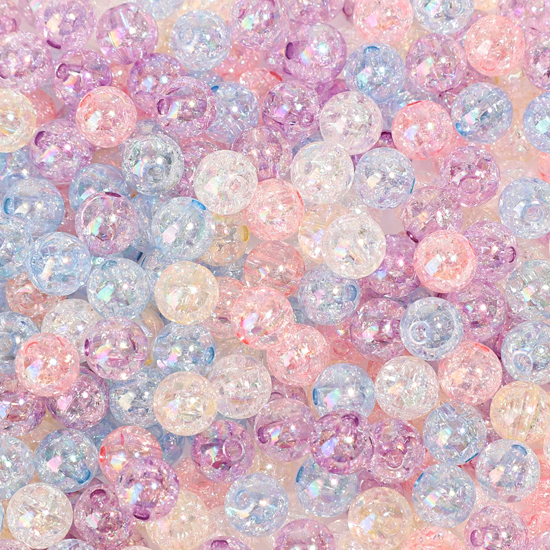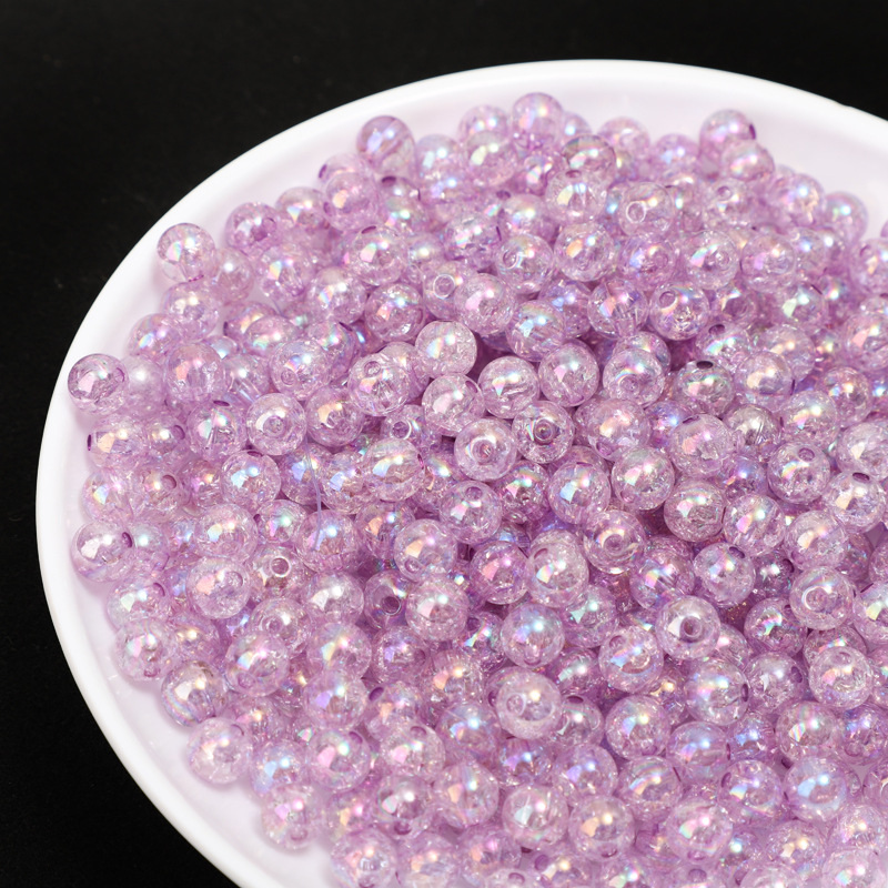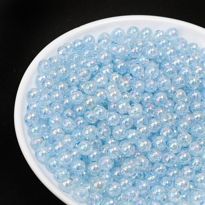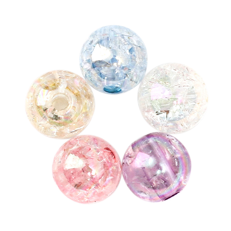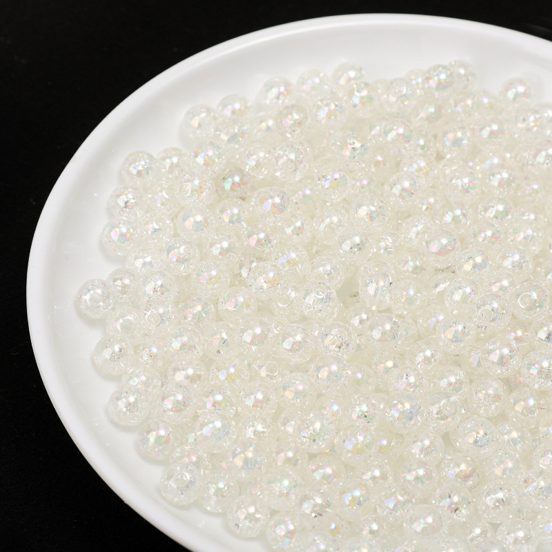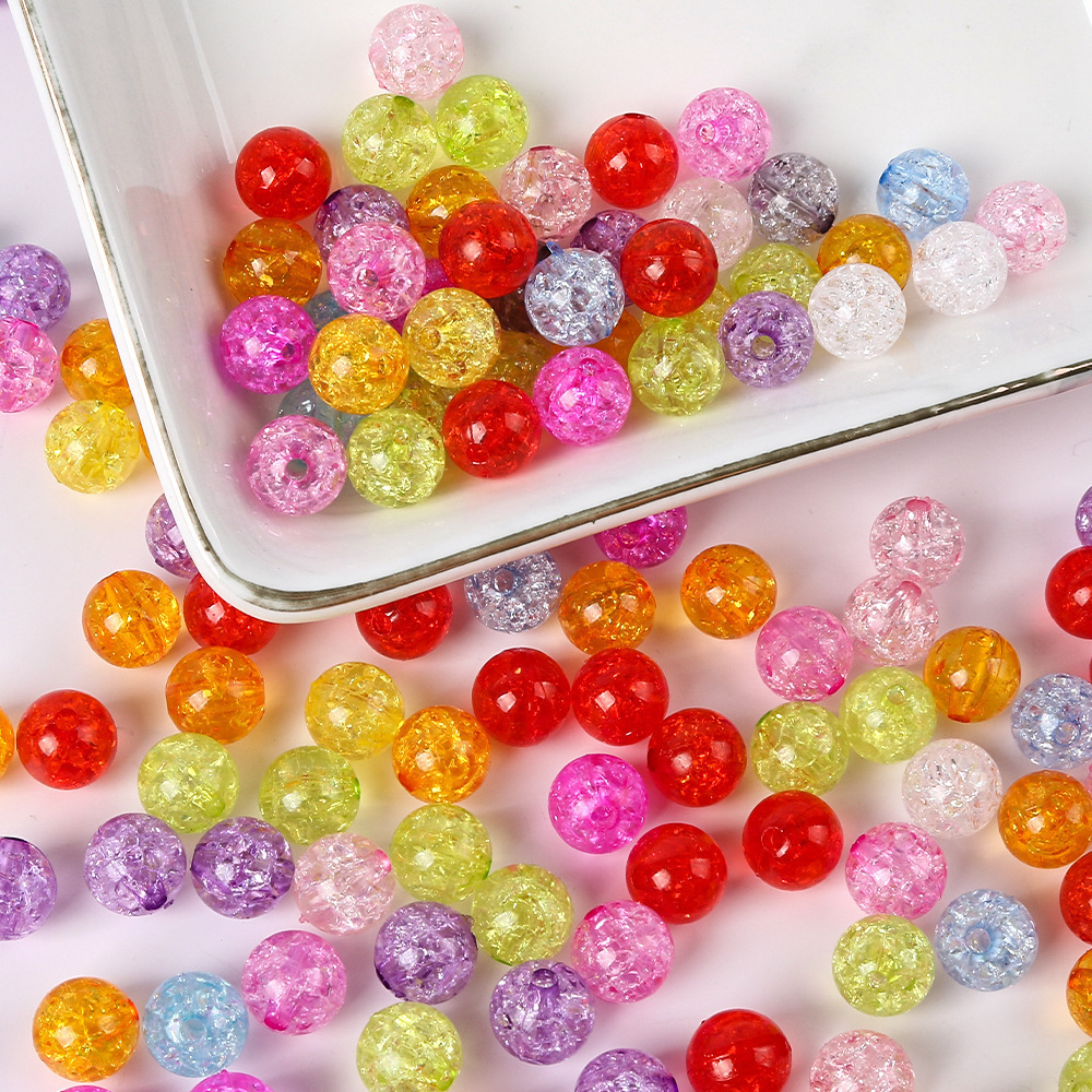 6-12MM亚克力透明裂纹爆裂圆珠 DIY手工碎花珠彩色碎石冰裂爆花珠