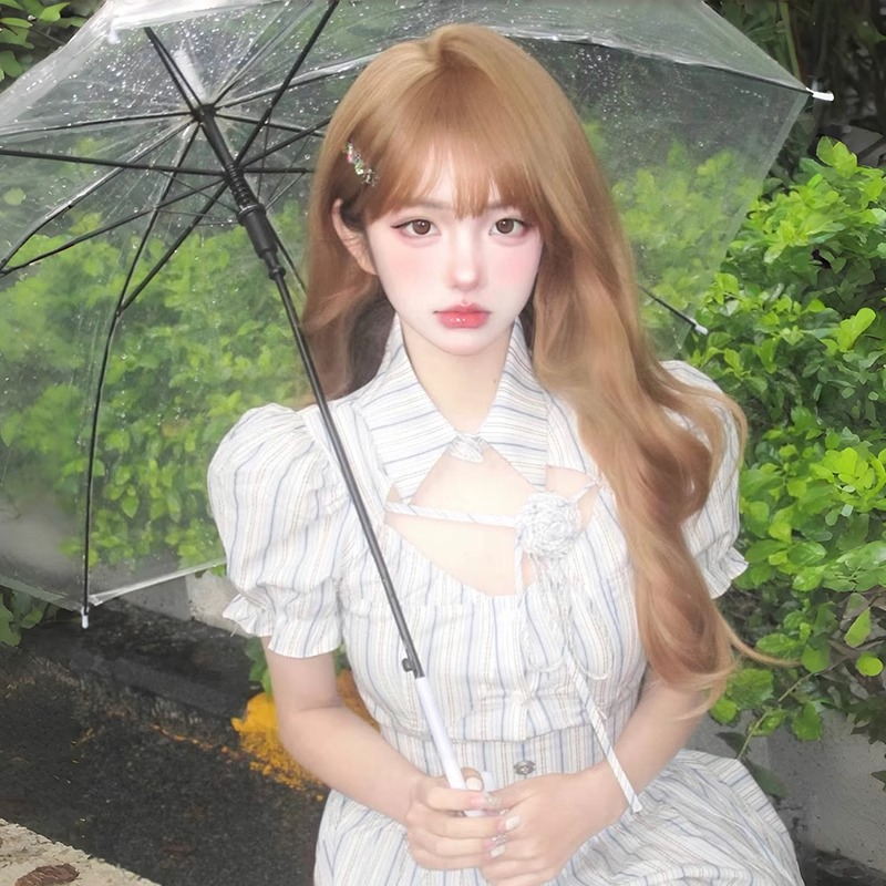 低い団子はかつらをつかみます。怠惰感があります。髪の包みは自然でふわふわしています。