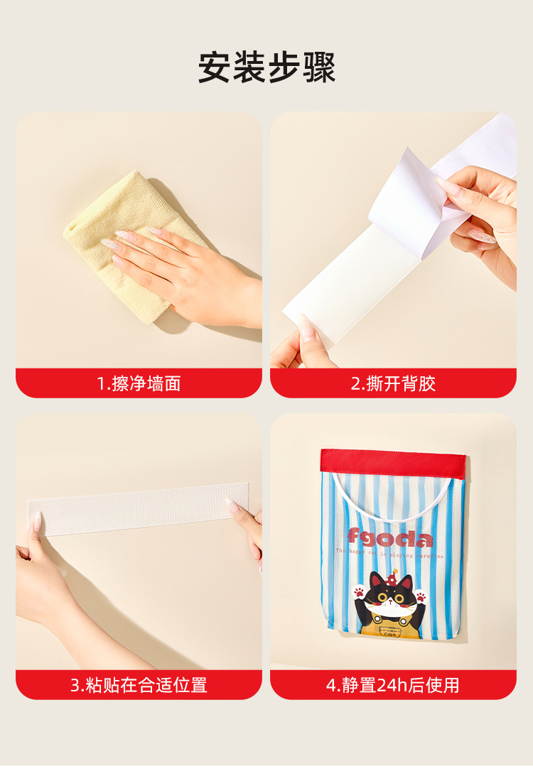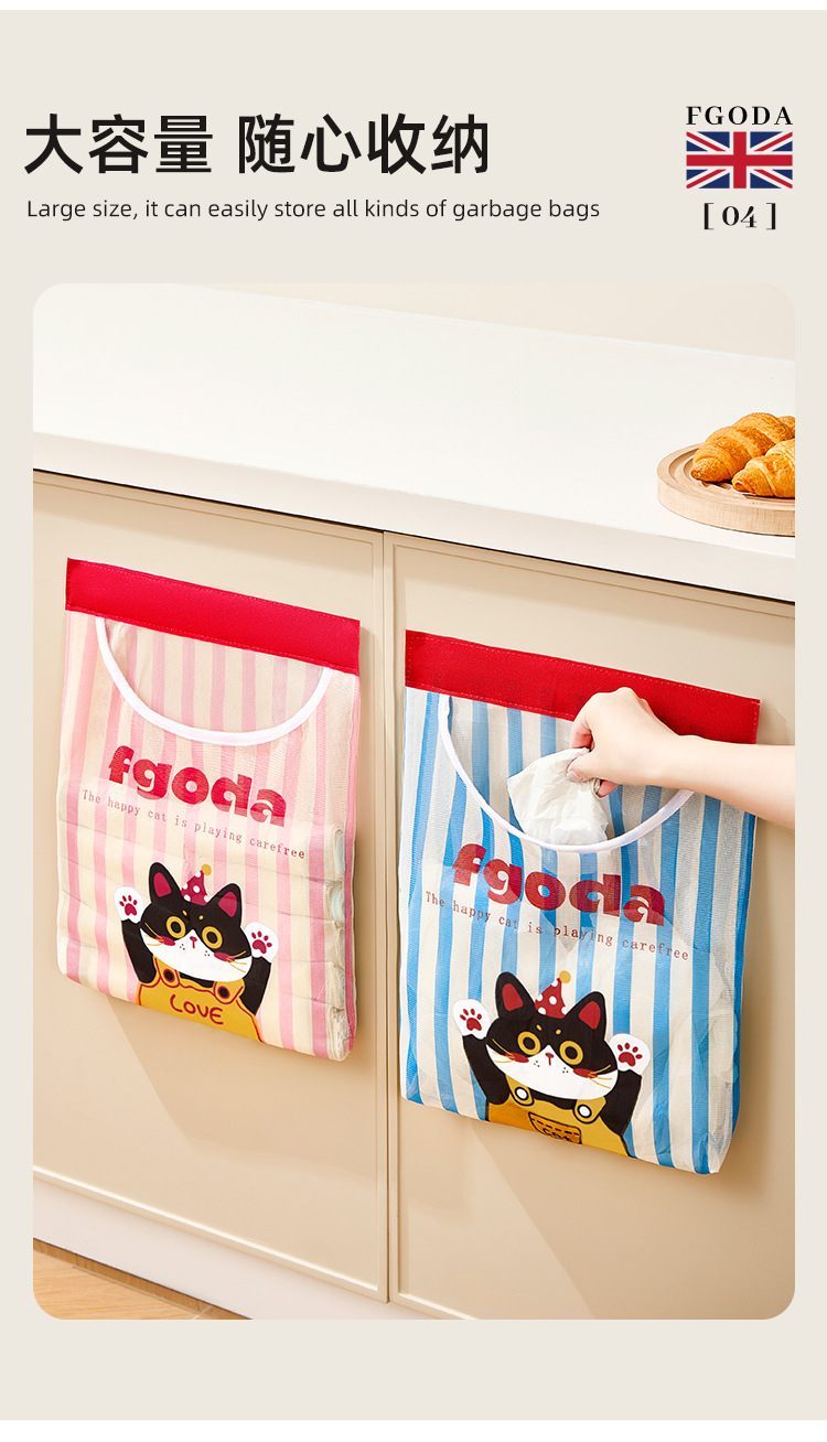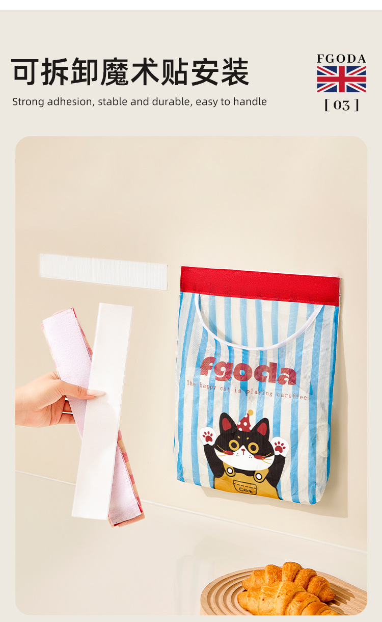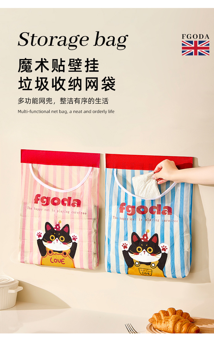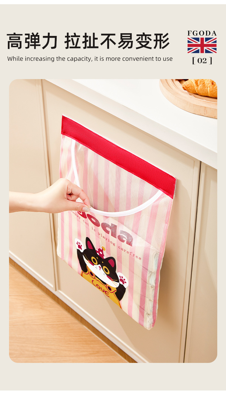 厨房垃圾袋收纳神器布艺墙上魔术贴挂袋挂墙大容量壁挂式卡通网兜