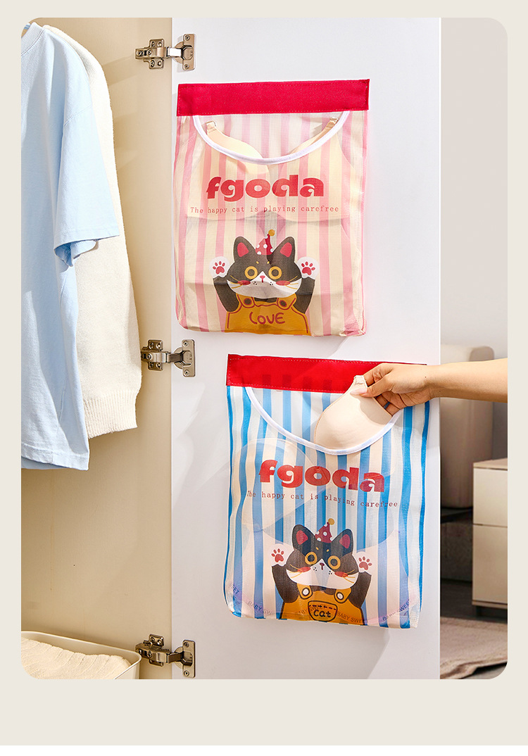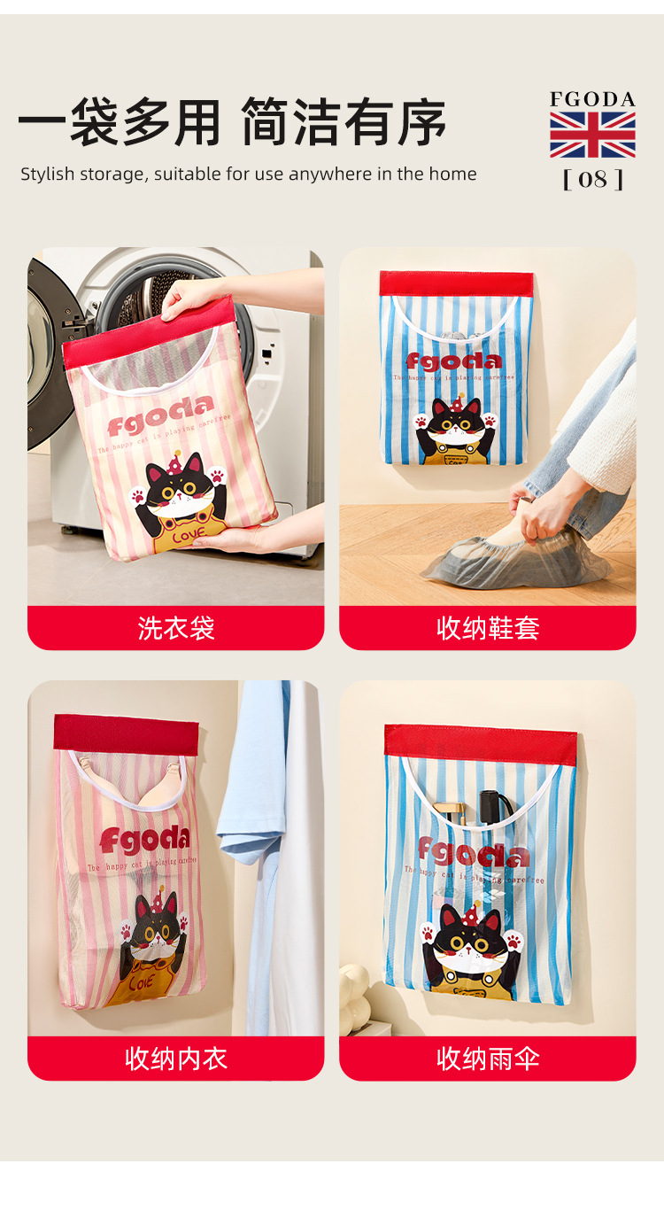 漫画ベルクロ収納ネットバッグ多機能収納袋衣類と靴下の収納袋パンチフリー収納バスケット車の収納