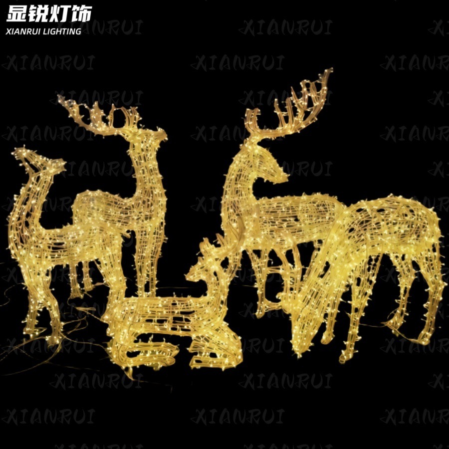 灯光节仿真糜鹿一家三口造型灯LED圣诞节图案文旅小品灯梅花鹿灯