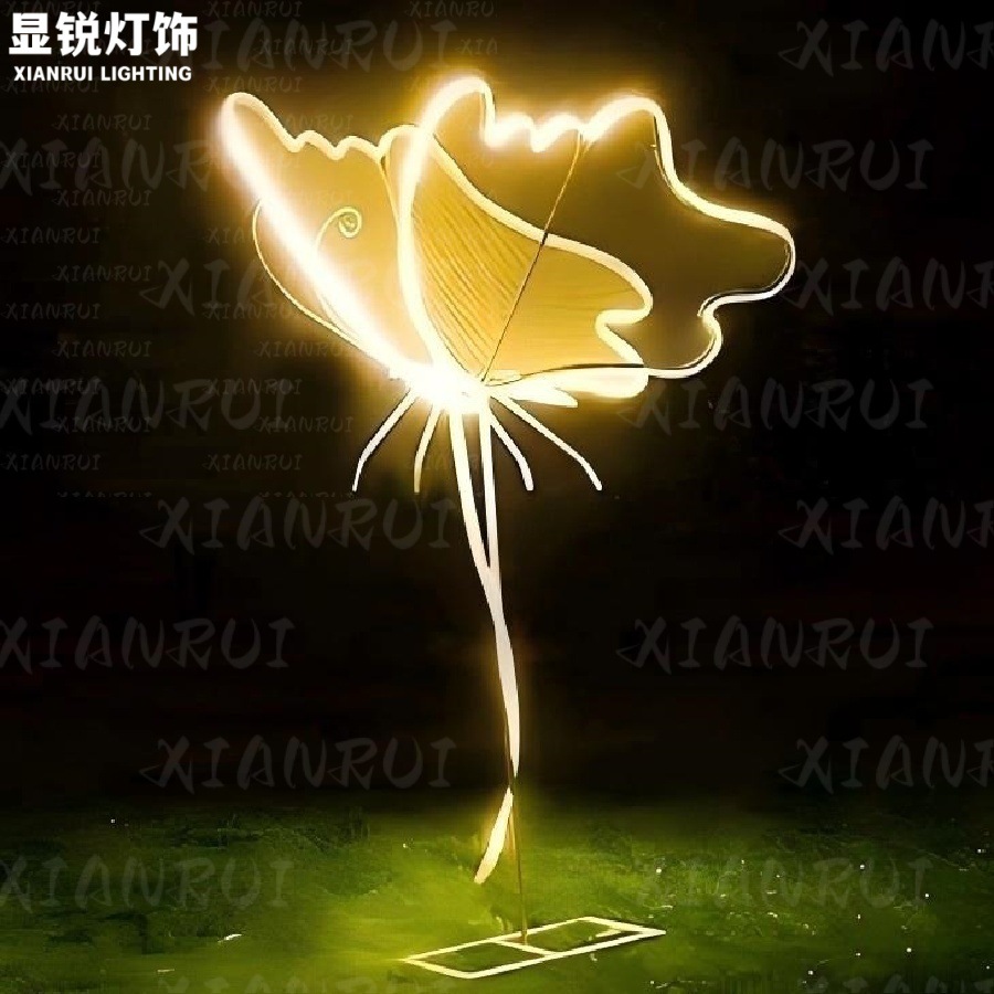 插地草坪干花玫瑰花灯布艺地插仿真led低压防水户外用七彩可选