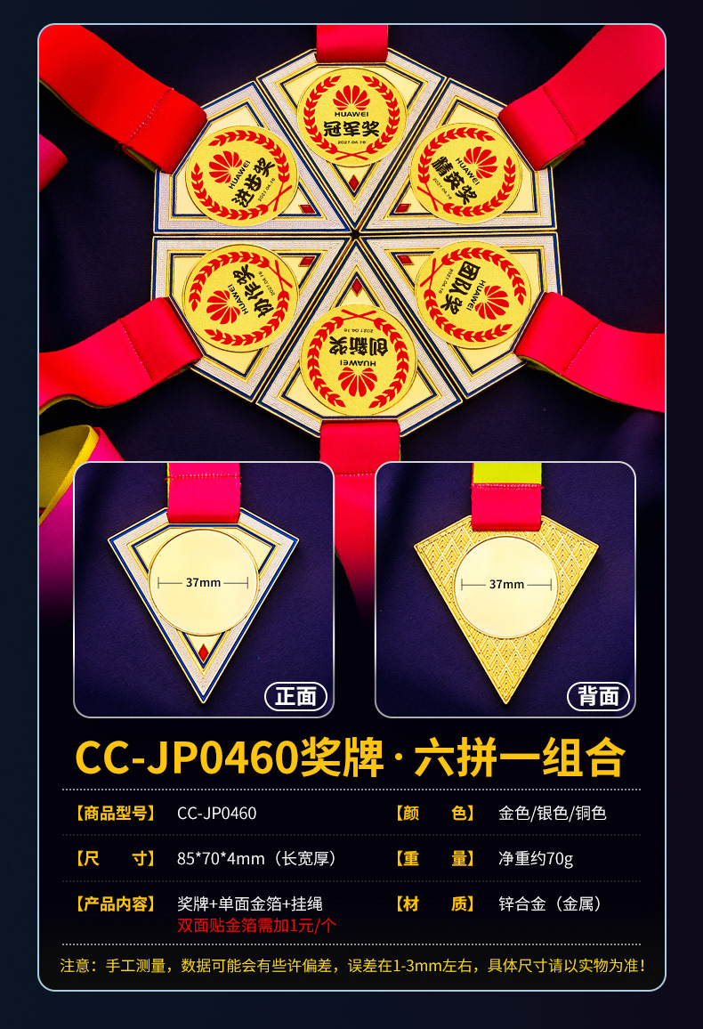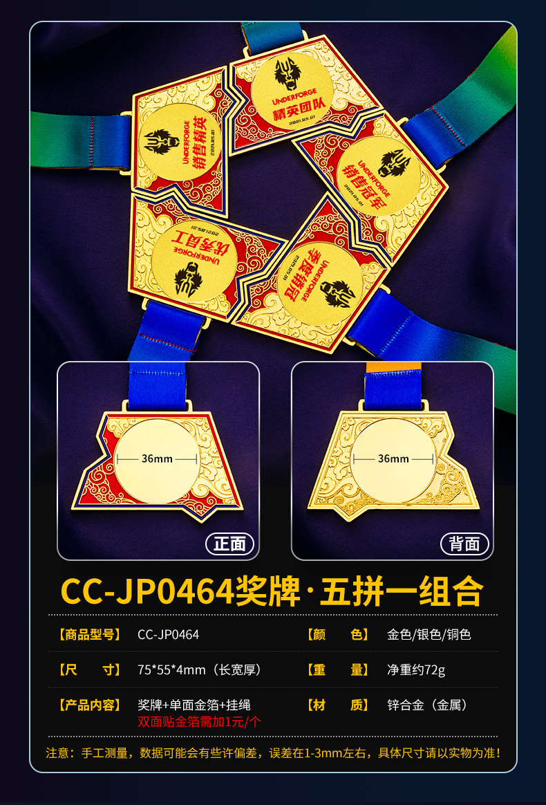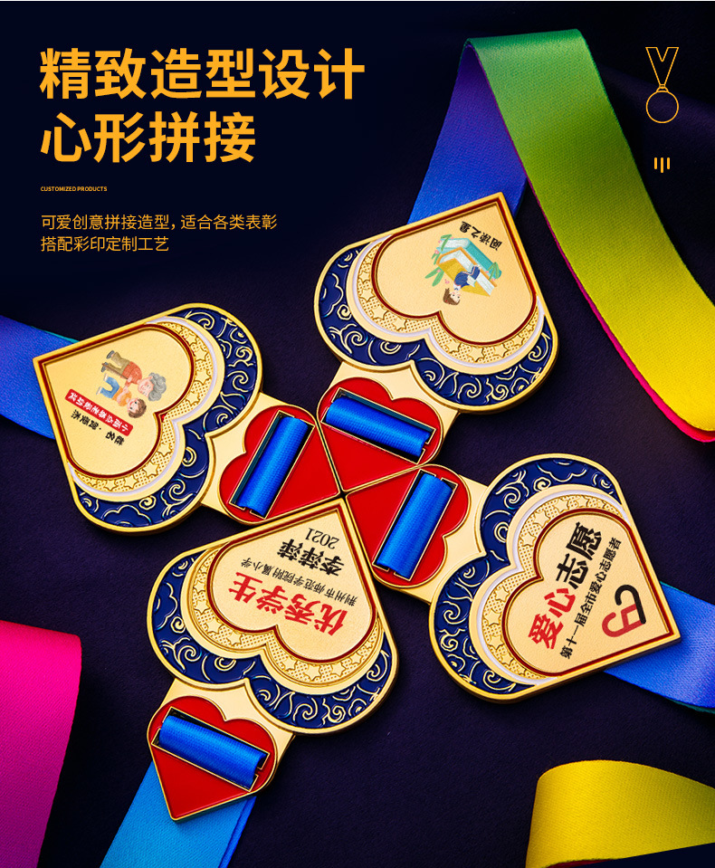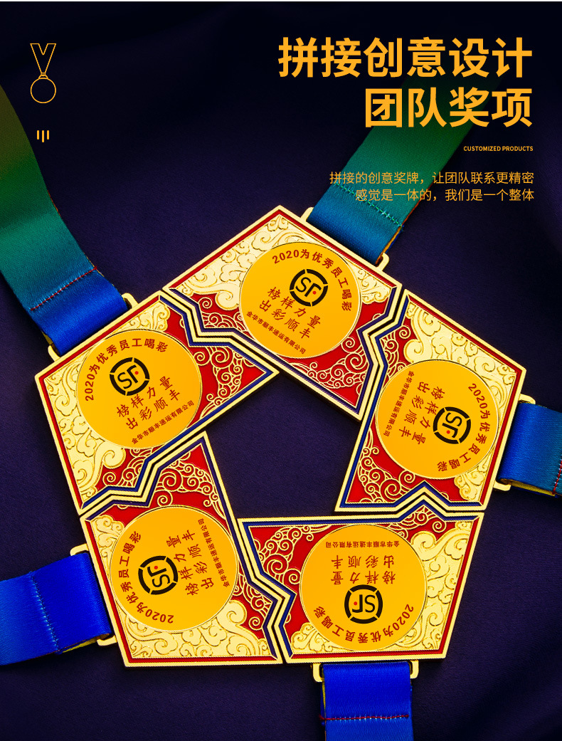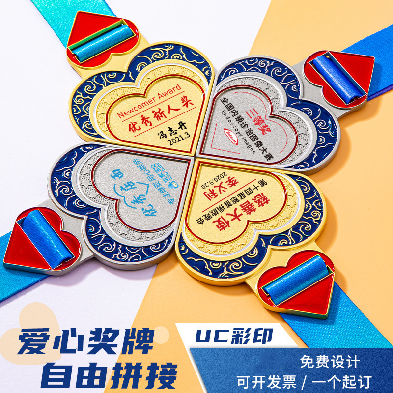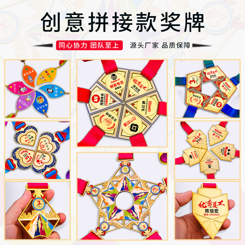 メダルカスタマイズ創意チームは組み合わせの栄誉をつなぎ合わせて、ランニング記念品を四五六合一メダルにします。