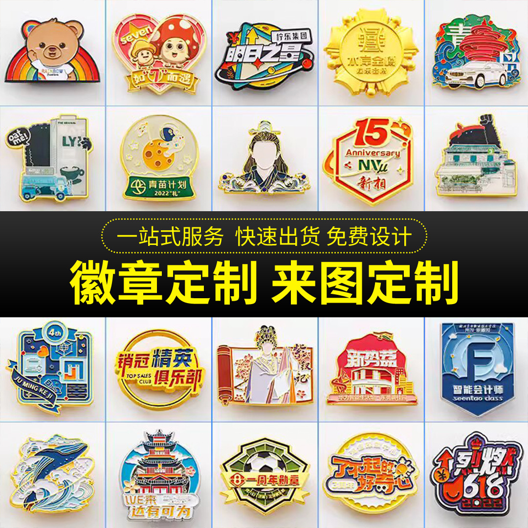 亜鉛合金製メタルブローチ、特注塗装模造エナメル校章バッジ、社章バッジ、カスタムロゴ製作