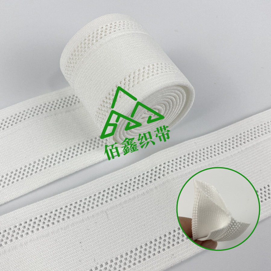 4cmの白い透かし彫りの開口網の目のゴムバンドの運動ズボンの腰の皮膚はひものゴムのベルトの現物の卸売りを着ることができます。