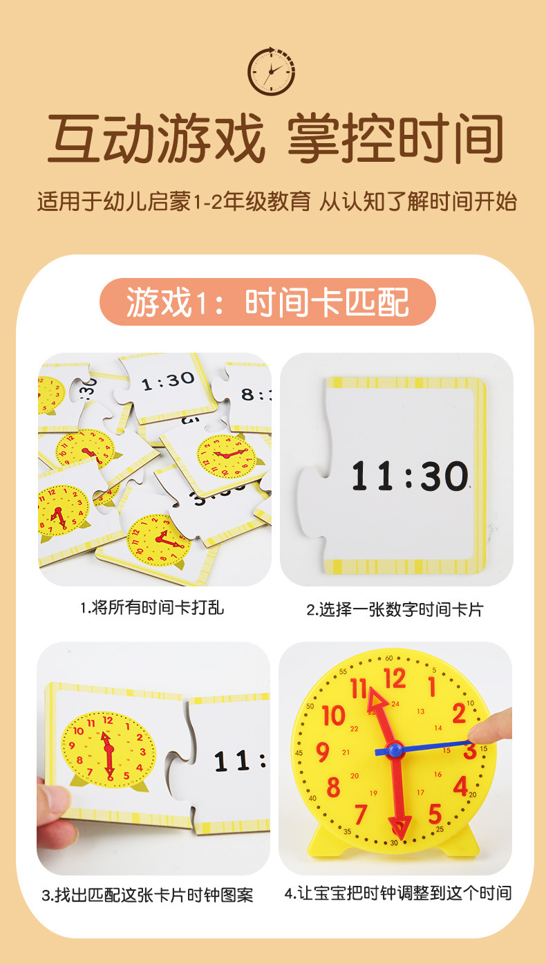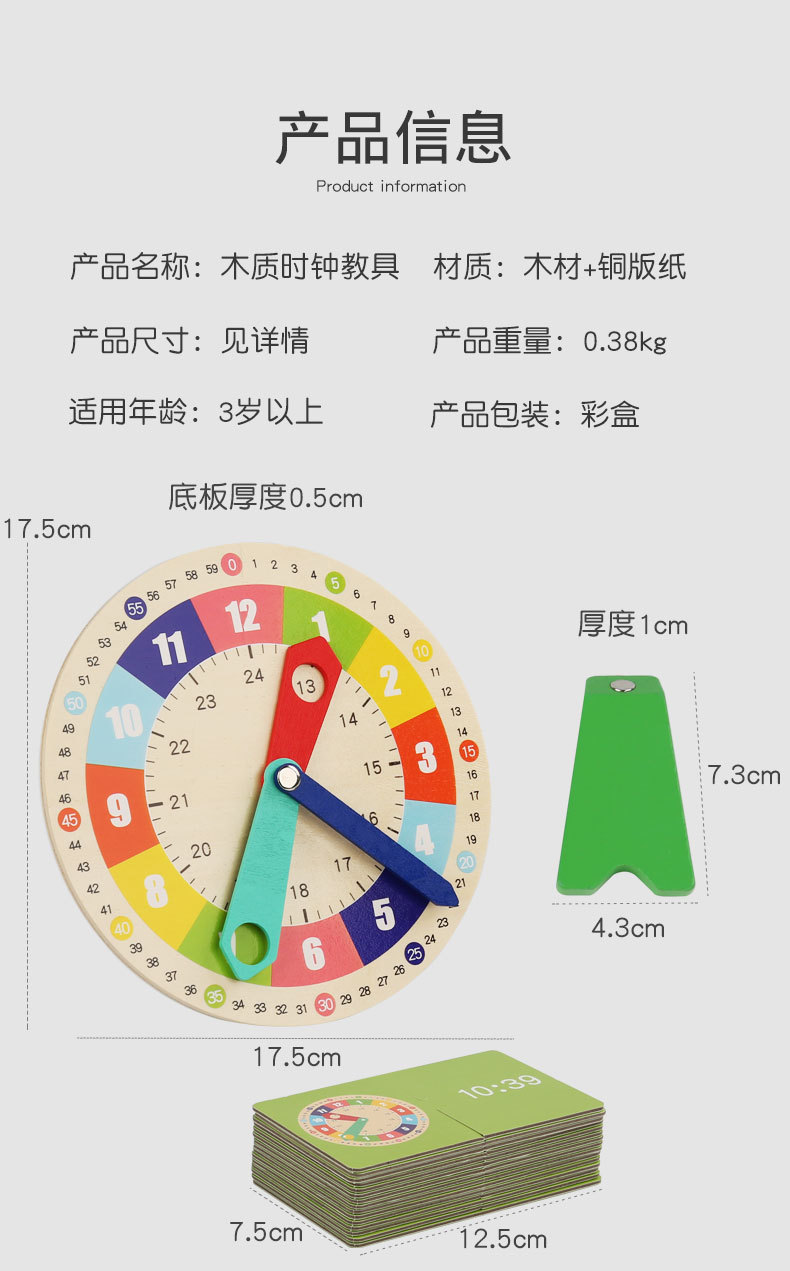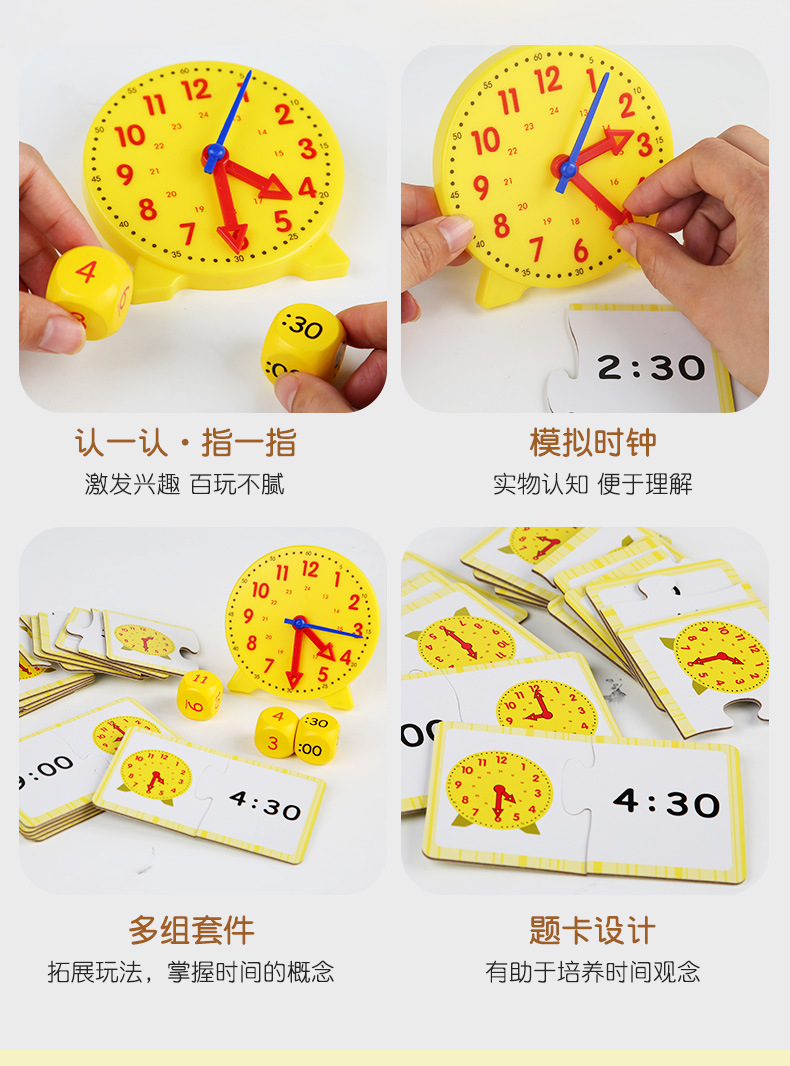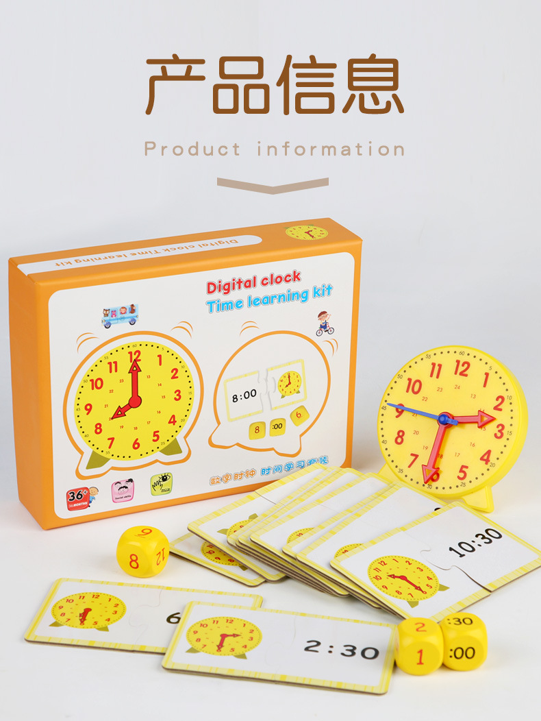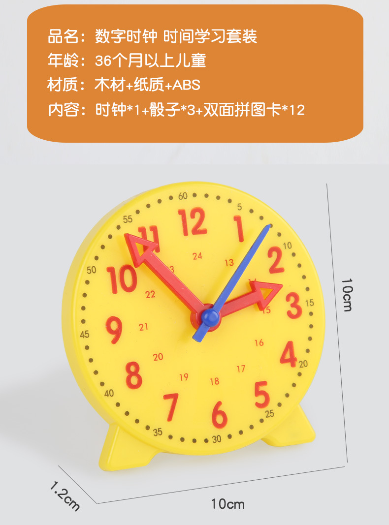 儿童益智早教数字时钟教具幼儿园小学生认识时间钟表模型玩具批发