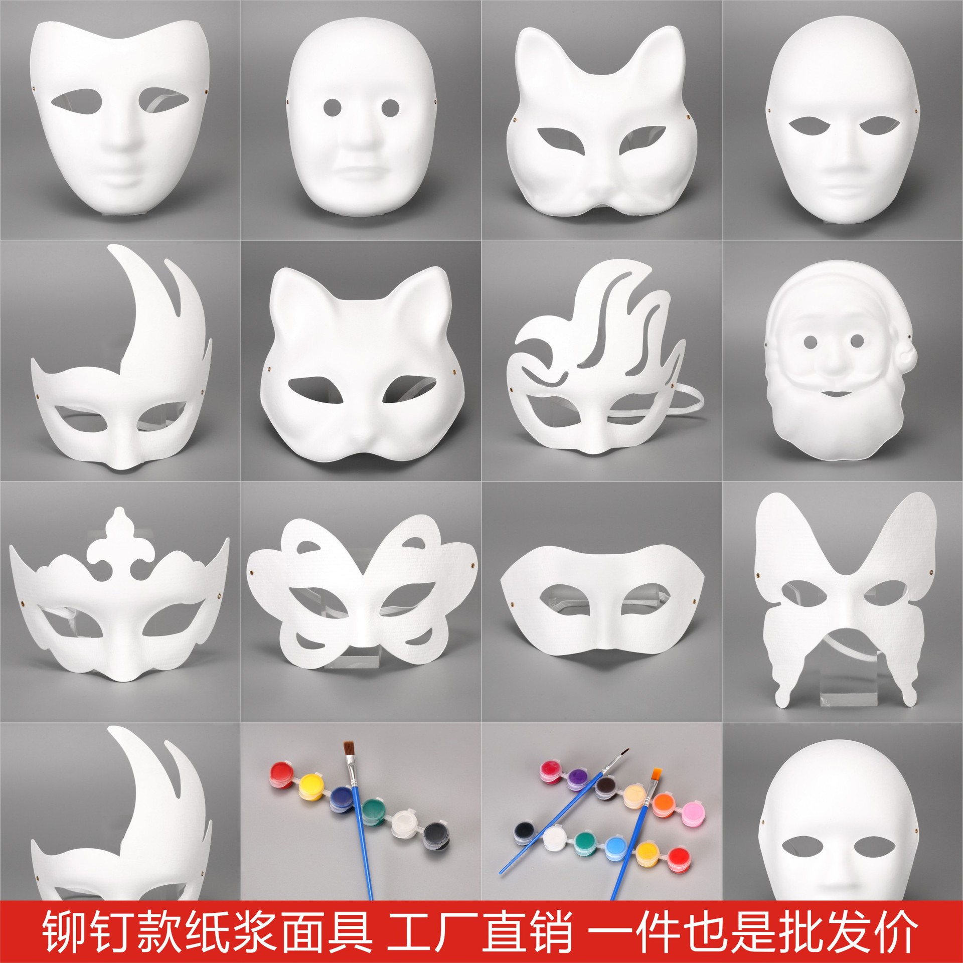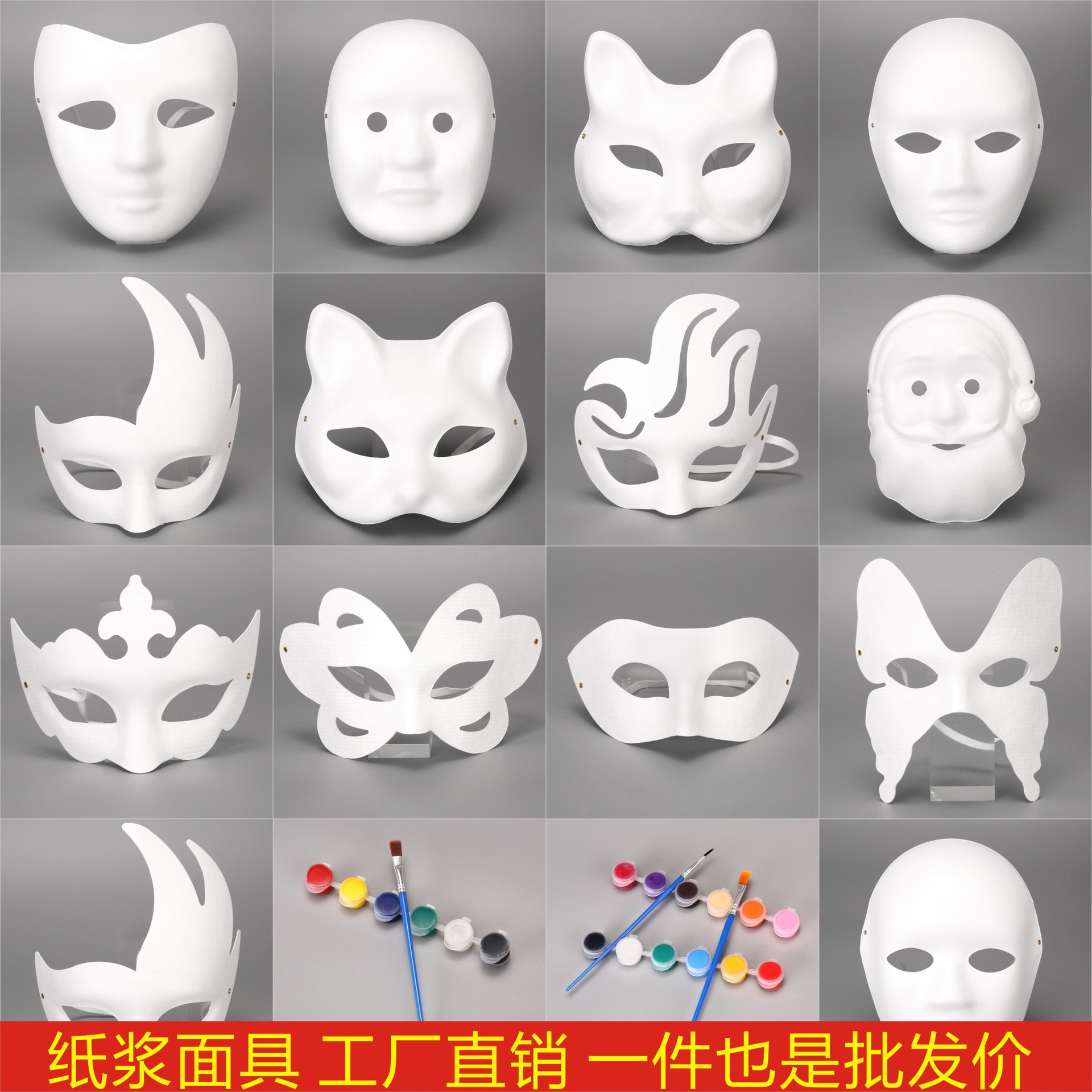 跨境脸谱万圣节DIY手绘白色纸浆面具儿童绘画涂鸦猫脸 白胚面具
