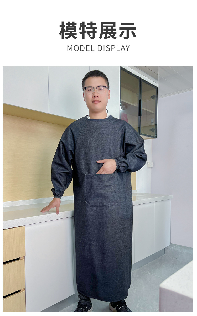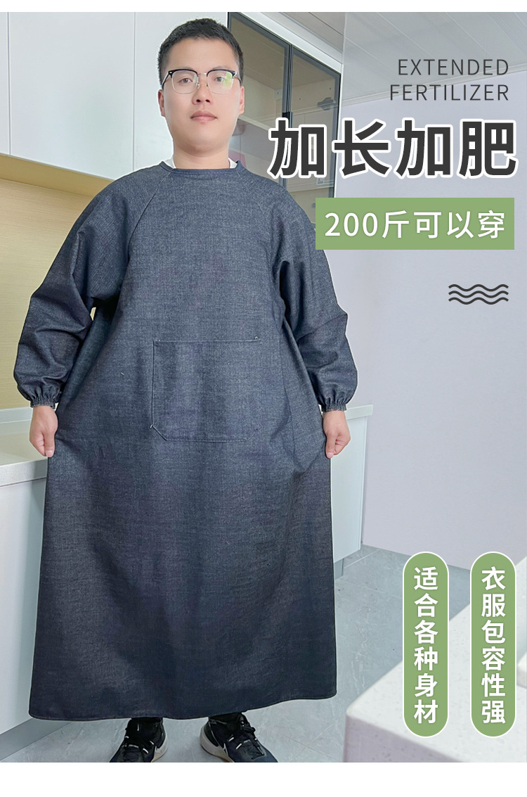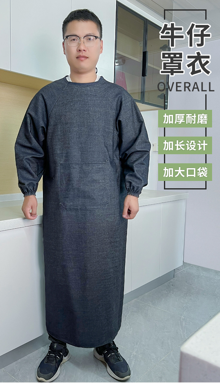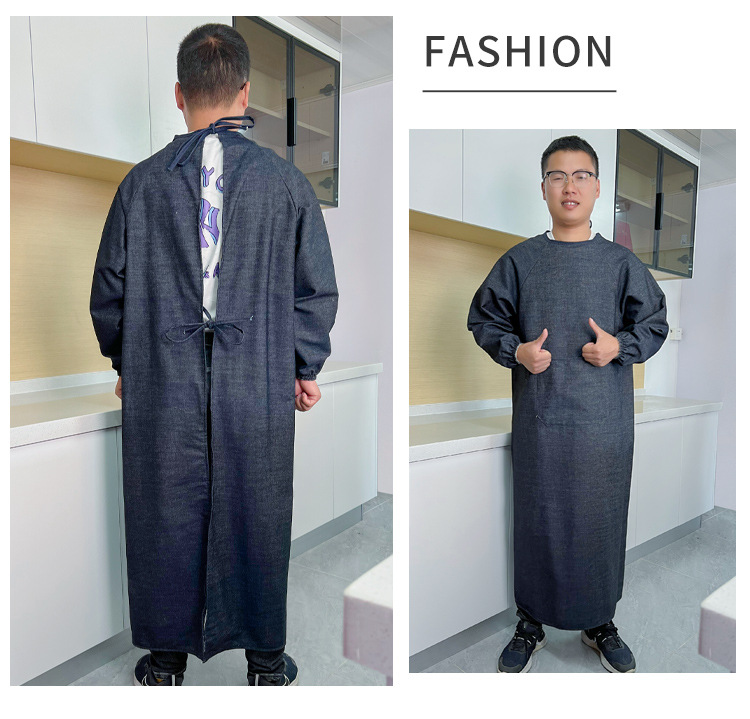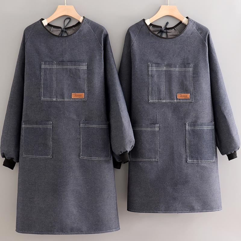 デニムの加肥は長袖の印刷エプロンのカバーを大きくします。
