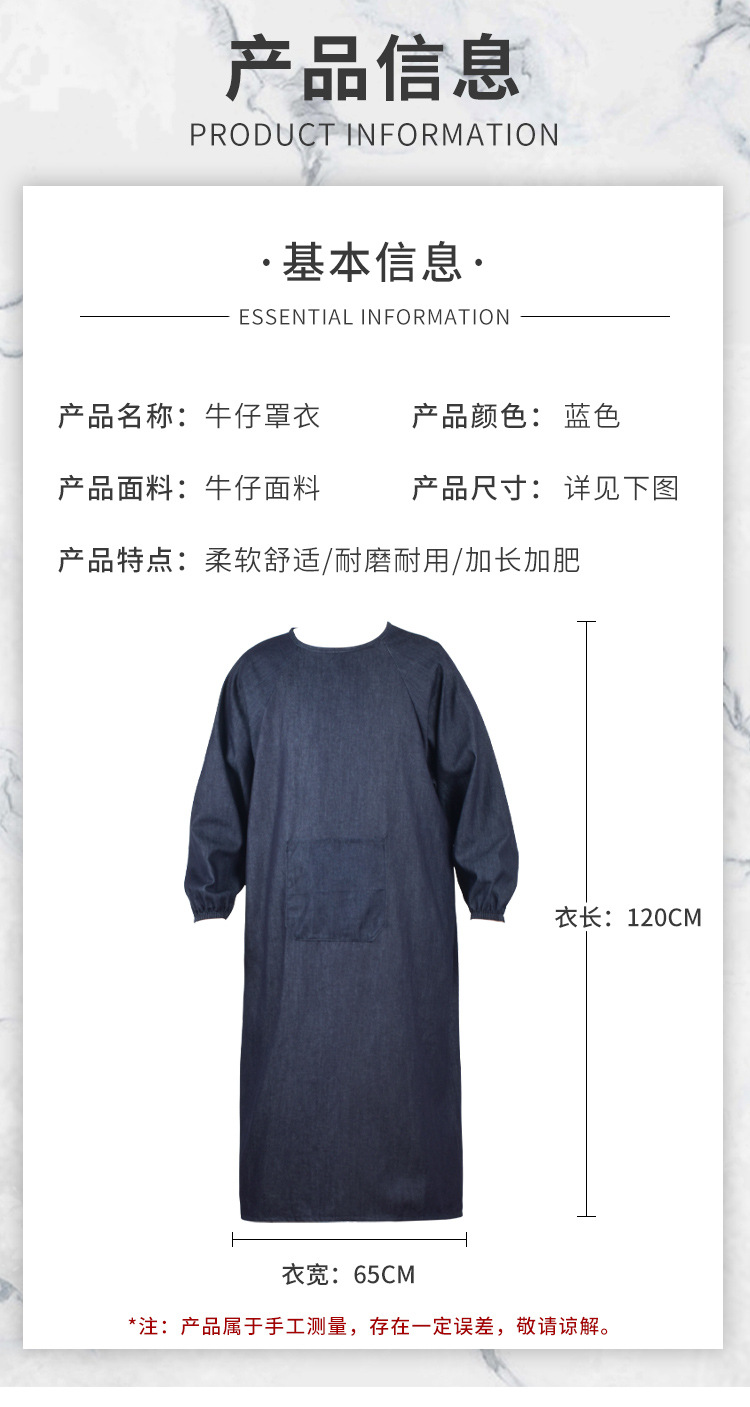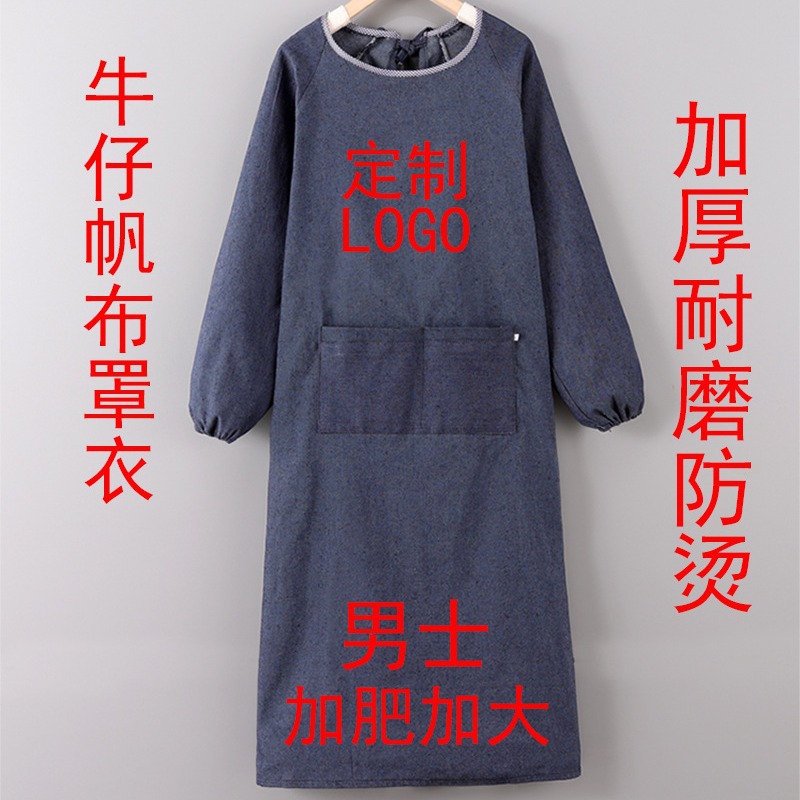 牛仔布罩衣围裙长袖防脏耐磨厚工作服防污搬运电焊反穿衣劳保倒褂
