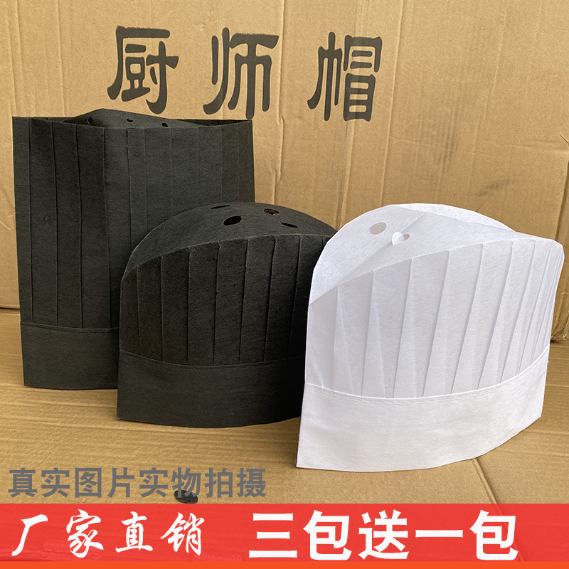 使い捨て黒と白のシェフの帽子不織布通気性のある高校の帽子厚い男性と女性のシェフの帽子レストランの作業帽子