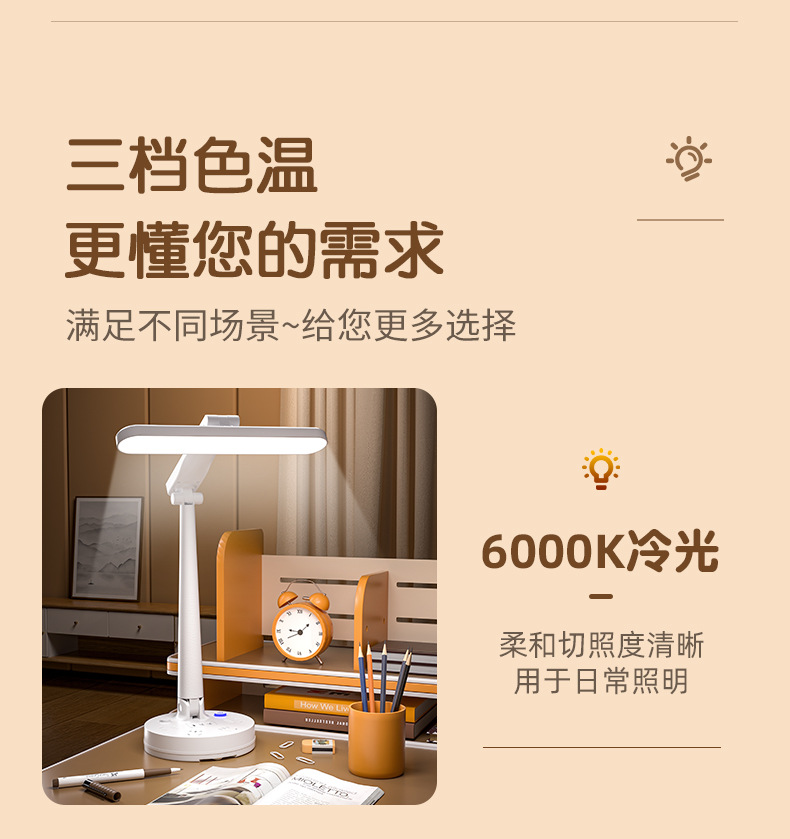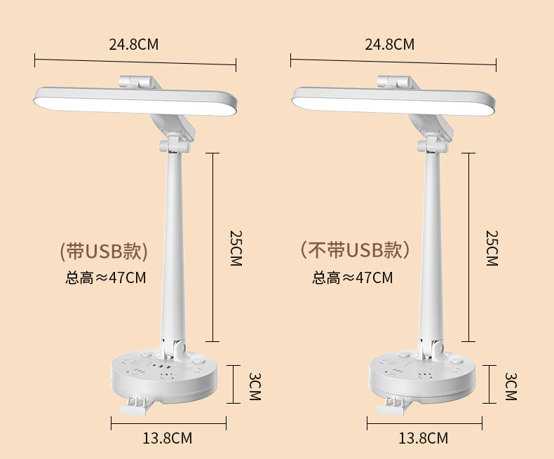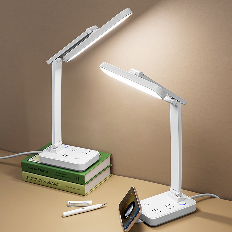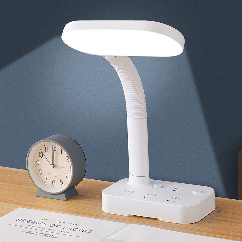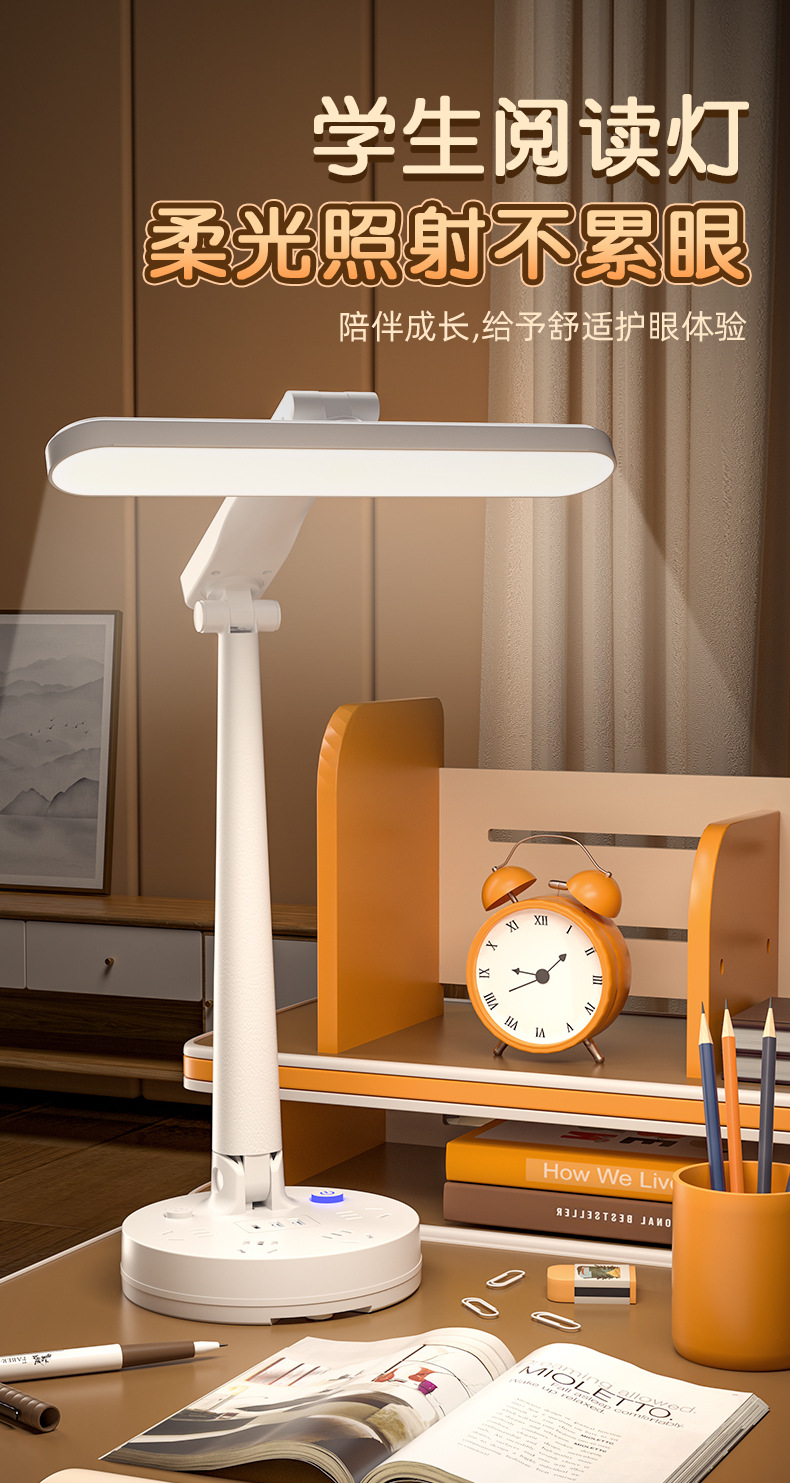 目保護電気スタンド学習コンセント付き一体読書灯学生寮児童近視防止寝室ベッドサイドランプ