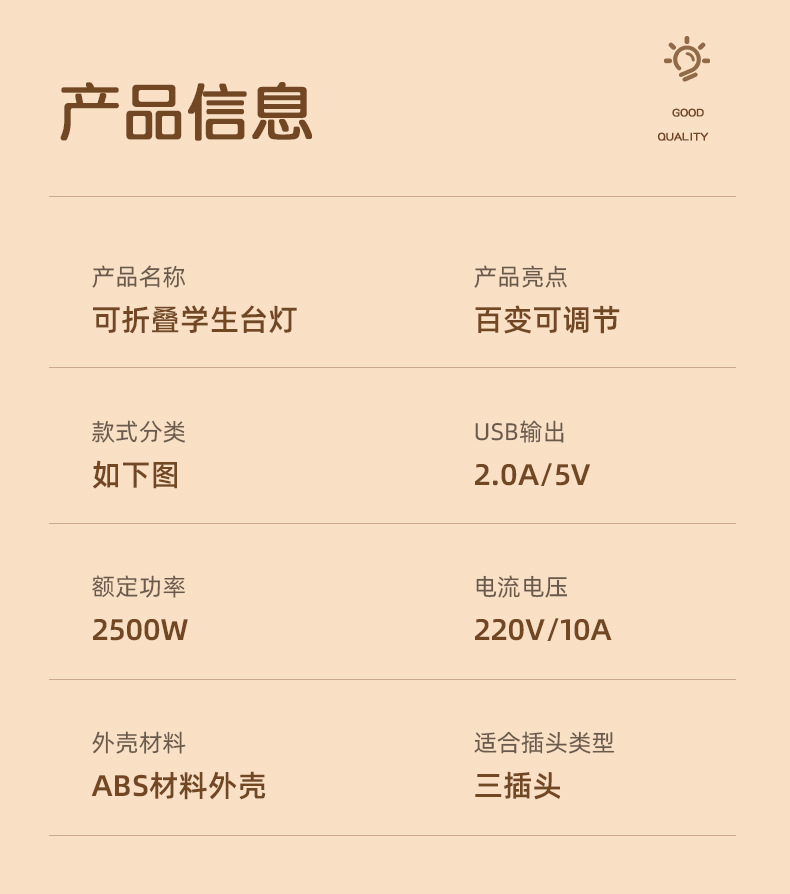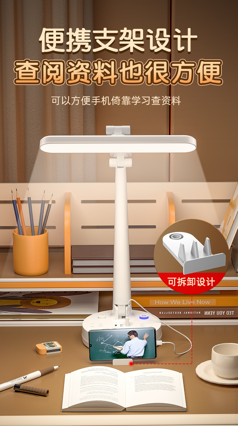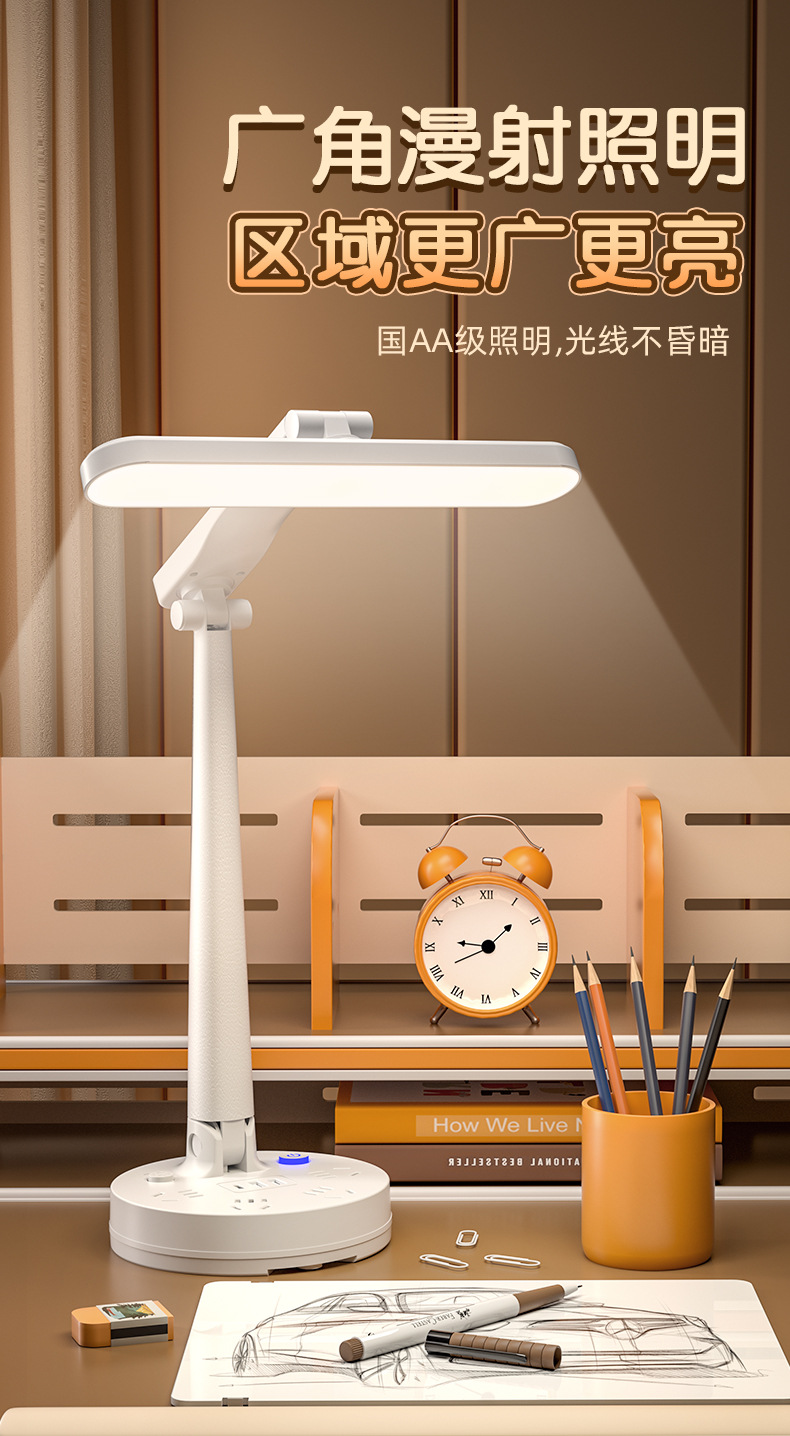 子供や学生が宿題をしたり読書したりするための、充電式でUSBポート付きの一体型デスクランプ。学生専用です。