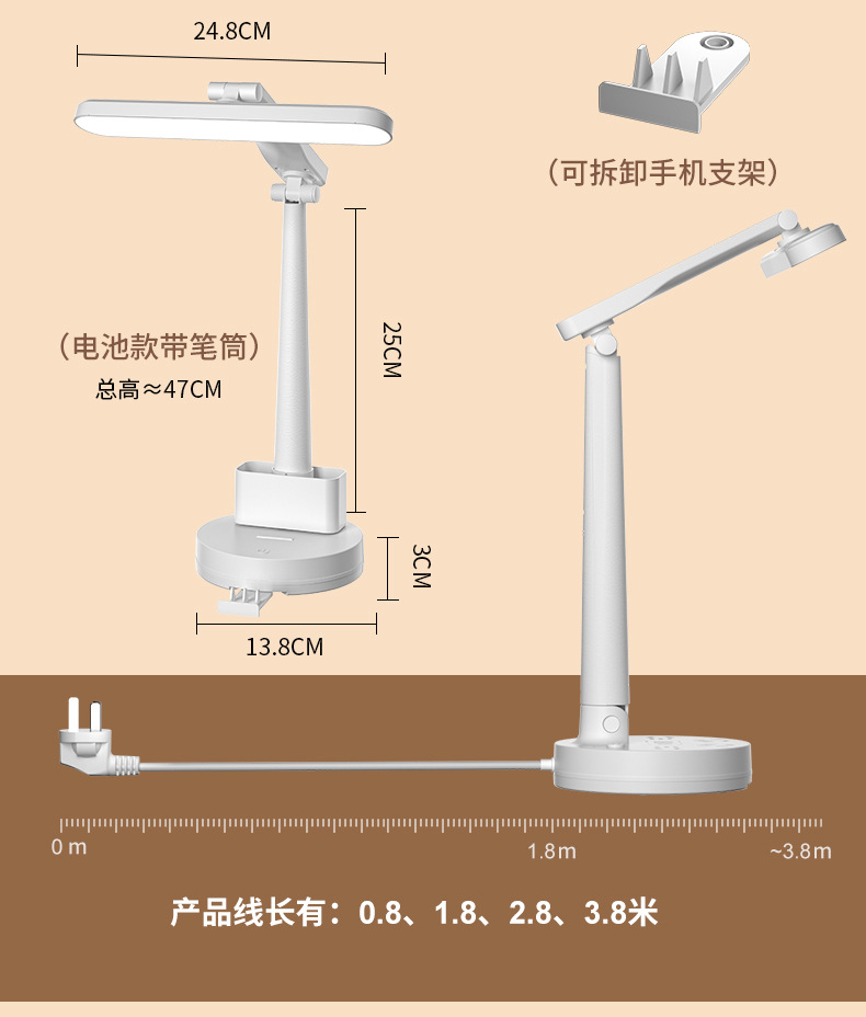 儒雅学習アイランプ学生寮専用机led寝室ベッドサイド読書台ランプコンセント付き