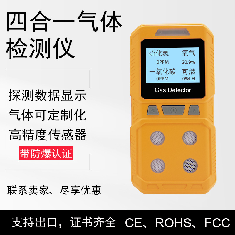 国境を越えた4-in-1ガス検知器、ポータブル産業用ガス、有毒および有害なガス、防爆、音と光による警報
