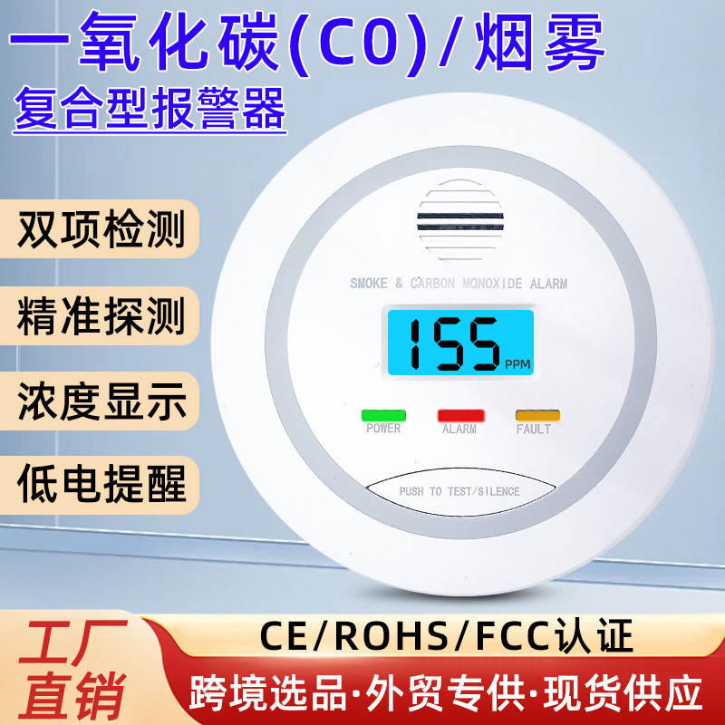跨境新品2合1烟雾一氧化碳报警器探测器高灵敏度耐用探测器批发